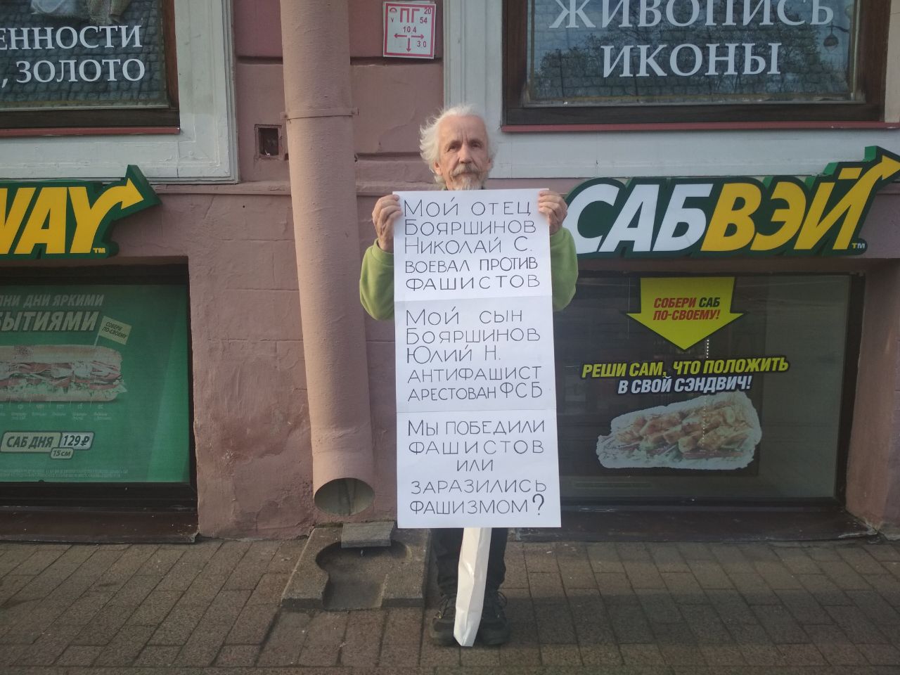 Родители Юлия Бояршинова несколько раз выходили на акции против ареста антифашистов, а также против пыток.