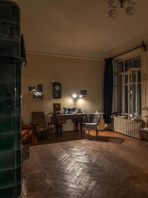 Поляков попал в квартиру вместе с экскурсоводом. В комнате, где жил Довлатов, организован музей советского быта с пишущей машинкой, бюстом Ленина, чугунным утюгом и стиральной машиной. «Эти предметы не принадлежали писателю, но мне было интересно на всё это посмотреть», — пишет Поляков.
