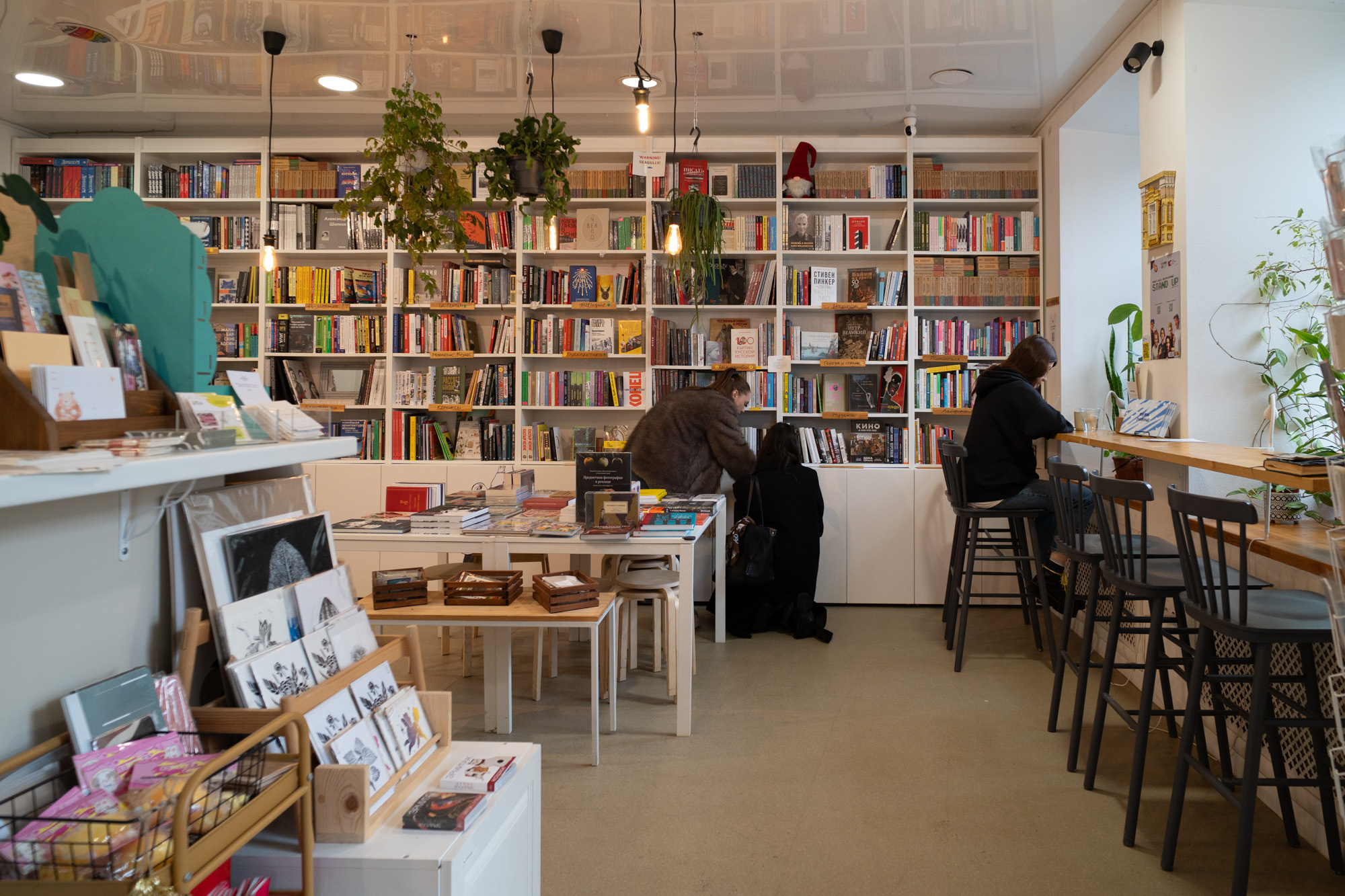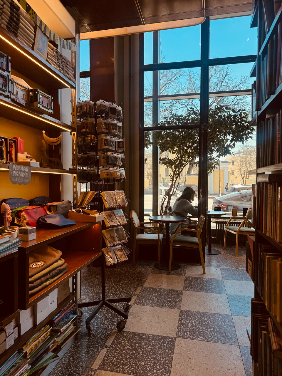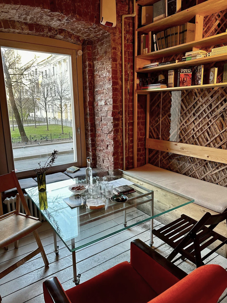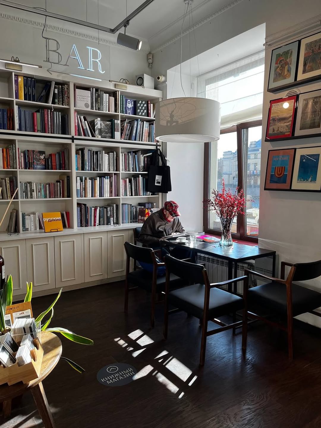 Еще одно кафе с книжным, на этот раз при галерее современного искусства с видом на Фонтанку. Горячие авторские напитки можно заказать в спешелти-корнере от Am Saint, а к ним круассан, чизкейк или веганский десерт. После перекуса стоит полистать тематические издания по искусству, фотографии или моде.