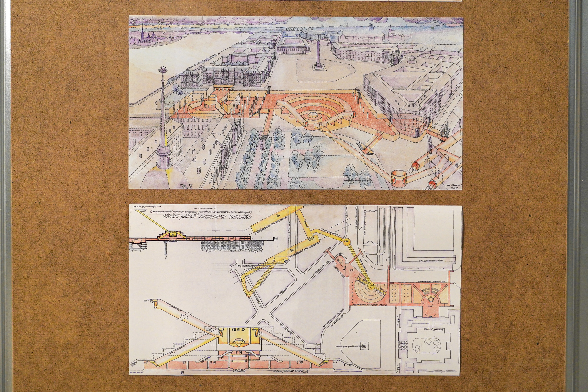 Кроме того, на втором этаже «Манежа» можно увидеть проект фондохранилища Русского музея от Олега Романова, концепцию театра на воде для Новой Голландии от Игоря Шмелева (автор бруталистской церкви в поселке Понтонный) и другие работы.