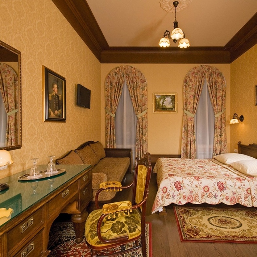 — Великолепная атмосфера, в номерах чисто и уютно. Очень хороший завтрак (7 видов) подается в номер. Дополнительно в номерах есть чайник и чайные принадлежности. Очень стильный отель в самом центре города, и главное — цены не заоблачные. Отличное дизайнерское решение в оформлении номеров. Это настраивает на восприятие особой атмосферы города.