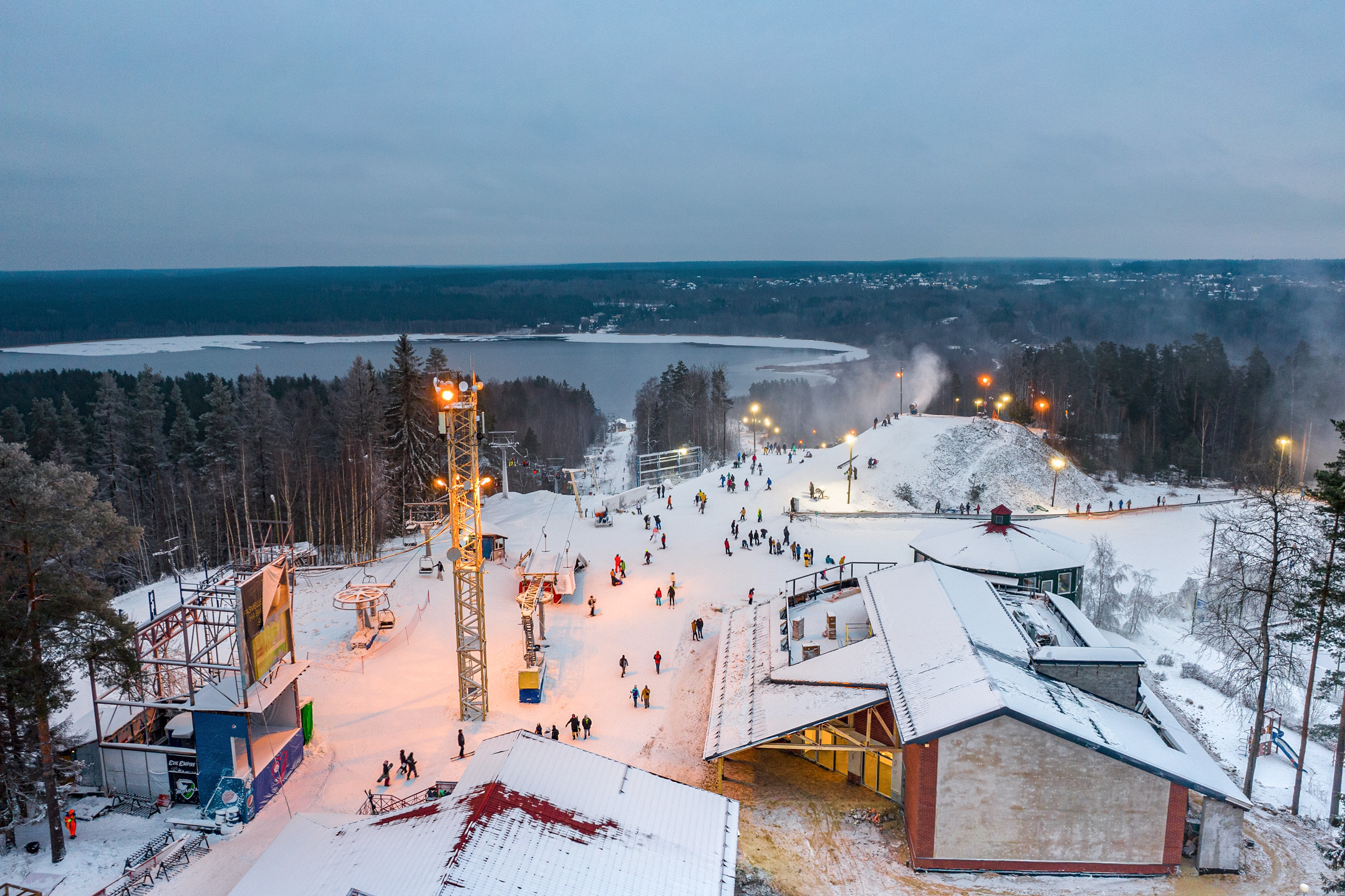 Еще один курорт для новичков. Длина склона здесь 400 метров, а перепад высот — всего 53 метра. На «Лазурных озерах» оборудовали две освещаемых трассы — взрослую и детскую. Значительных очередей на катание здесь обычно нет, и это самый новый комплекс в списке — его открыли в 2017 году.
