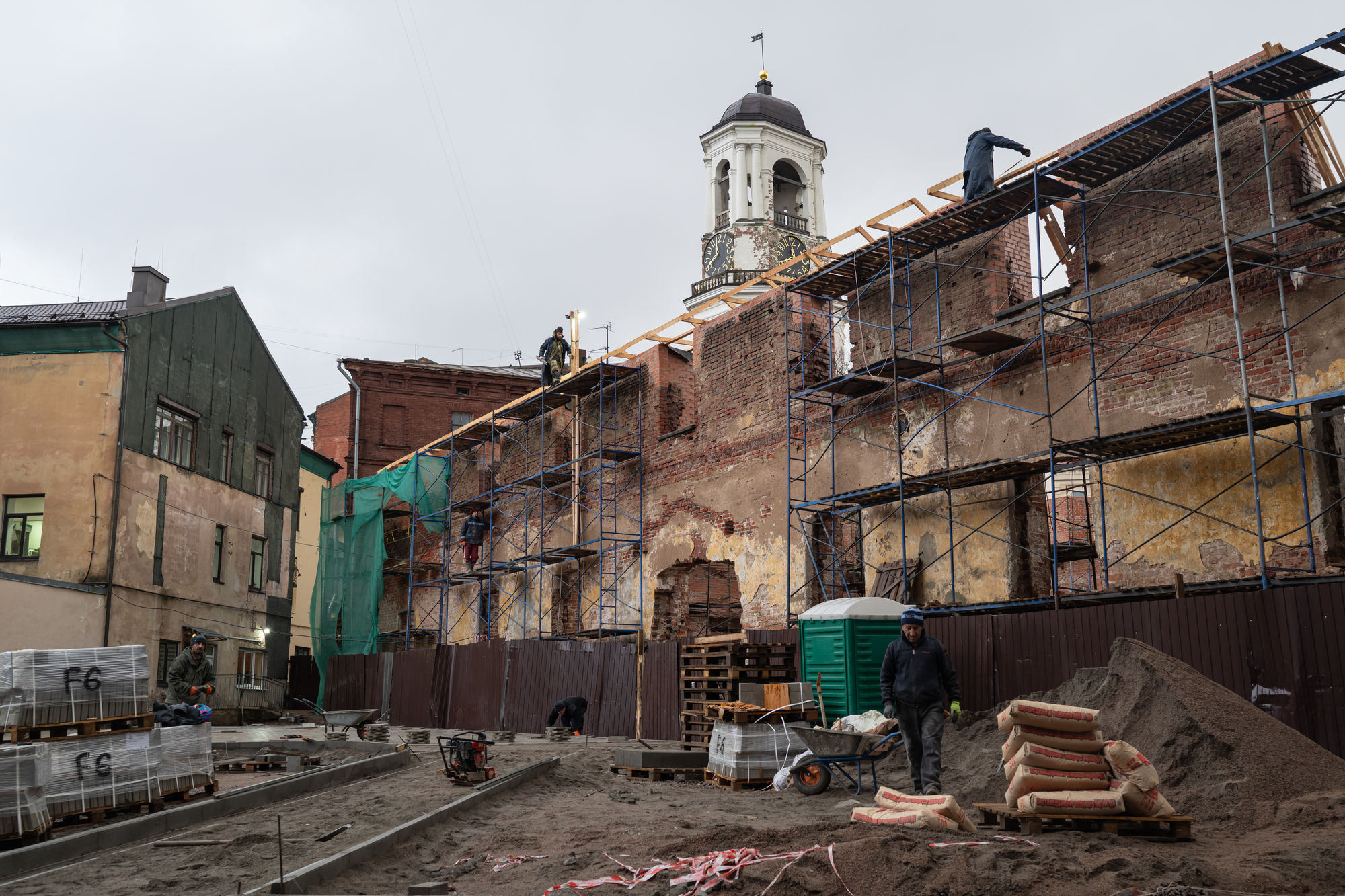 Реставрация выборгской архитектуры идет в основном за государственный счет. С 2015 года, когда началось восстановление городского центра, он точно стал фотогеничнее. Подрядчики успели подновить фасады, части средневековых построек и нескольких зданий в стиле модерн. К работам у местных жителей и петербургских градозащитников немало претензий. За фантазийность активисты ругали реконструкцию Монрепо, на некоторых объектах — в том числе башне Олафа и модерновом «дворце Пиетинена» — работы пришлось переделывать по несколько раз. А порой рабочие просто уничтожают исторические детали, которые не включены в проект и не кажутся на первый взгляд ценными. Так было, например, с росписями в доме Портана