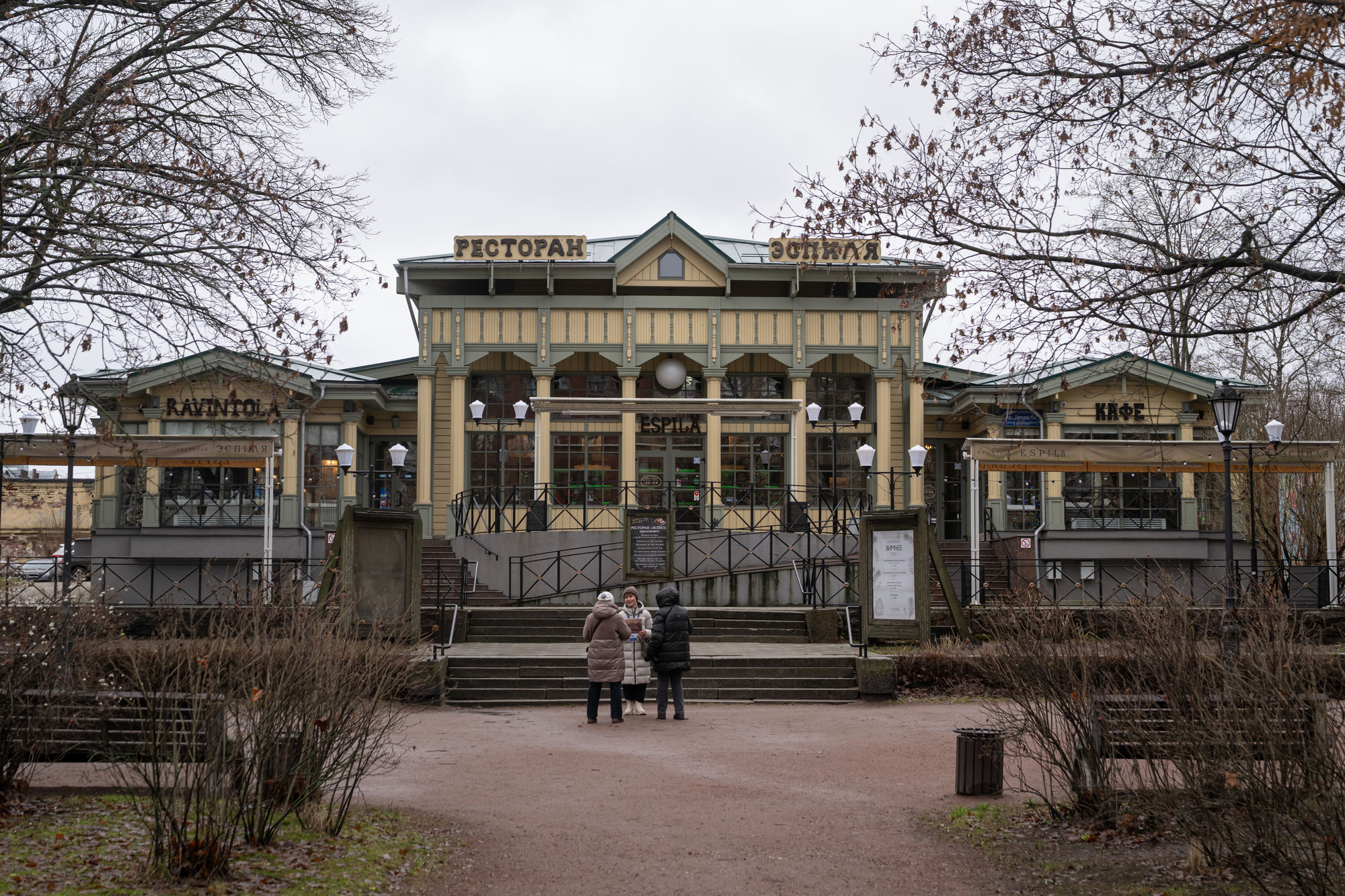 В парке на проспекте Ленина работает ресторан «Эспиля», еще одно место с историей. Первое одноименно заведение, знаменитый финский ресторан с оркестром, любимый выборгскими актерами и художниками, работал на том же самом месте с 1890 по 1944 год. Для бедствующих представителей богемы в нем держал открытый счет Юхо Лаллукка, будущий спонсор строительства библиотеки Аалто. Оригинальный ресторан разрушили во время Второй мировой войны. В 2016 году уже российские рестораторы построили на том же месте новое заведение на 200 мест, отчасти по мотивам прежнего и под тем же названием. Меню тоже вдохновлено прейскурантами первой трети XX столетия.