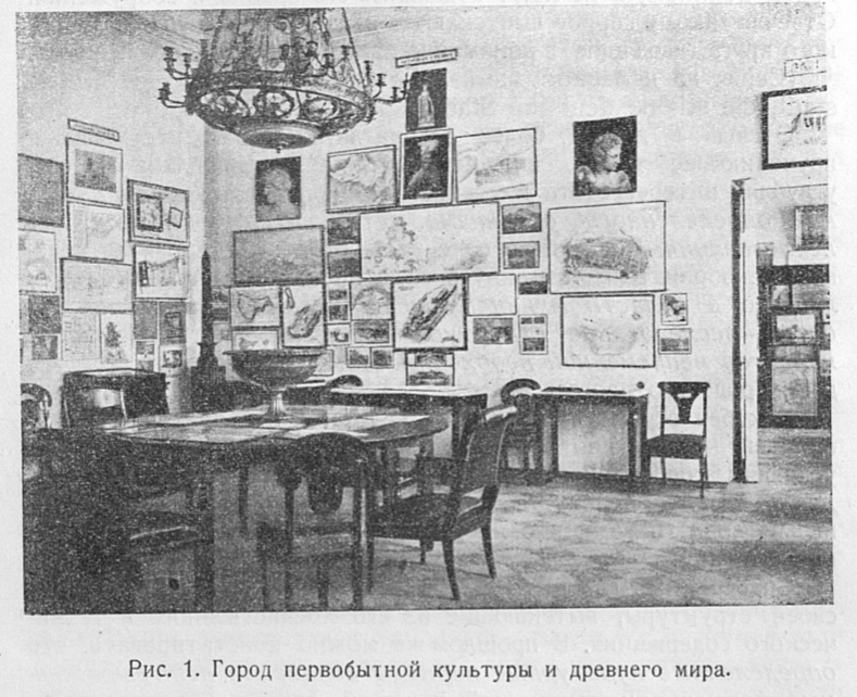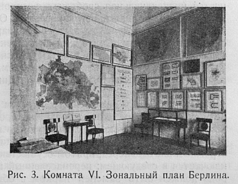 Здесь с 1918 года посетителям показывали схемы поселений разных эпох: от Вавилона, Афин и Трои до «городов-садов», популярных в то время в Америке и Европе. Отдельные залы были посвящены планировкам Лондона, Парижа, Берлина, Москвы. Также в музее можно было увидеть коллекцию воплощенных и существовавших лишь в теории генпланов Петербурга, начиная от первого плана Жан-Батиста Леблона, а также карты города разных эпох.  Подробнее о собрании ― в издании Музея города