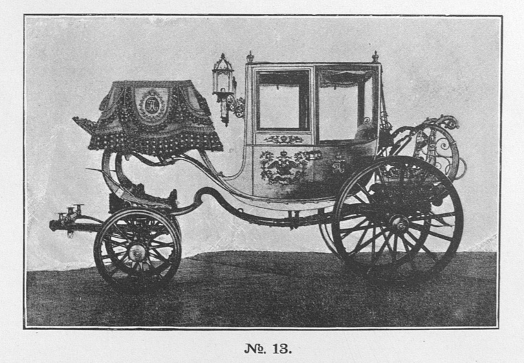 Здесь во второй половине XIX века показывали экипажи царской семьи. На первом этаже располагались брички, которыми император и его родственники иногда пользовались. На втором — уже неиспользуемые сани, кареты и возки. Главным предметом экспозиции был «простой возок» — небольшие сани, изготовленные Петром I. В 1917 году музей разграбили. Позднее уцелевшие экспонаты распределили по разным коллекциям. Подробнее — в музейном каталоге 1891 года.