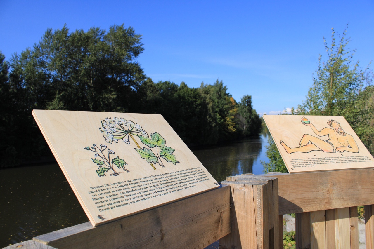 Участники Waterfront также создали на набережной «Музей борщевика». Они установили вышку, с которой видны недоступные из-за ядовитого растения территории, а также провели лекцию о борьбе с борщевиком.