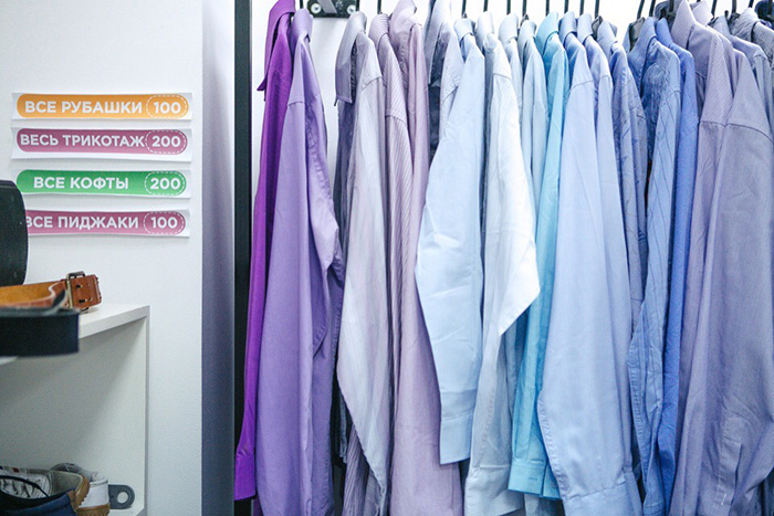 После склада отсортированные вещи попадают в магазины. Каждый из шести выглядит по-своему. На «Чкаловской» «Спасибо!» похож на магазин антиквариата, в Ковенском переулке — на модную кофейню, а на улице Маршала Говорова — на ярмарку. Это сделано сознательно: в компании анализируют, какие люди ходят в каждый из магазинов, и в зависимости от этого меняют интерьер и ассортимент.