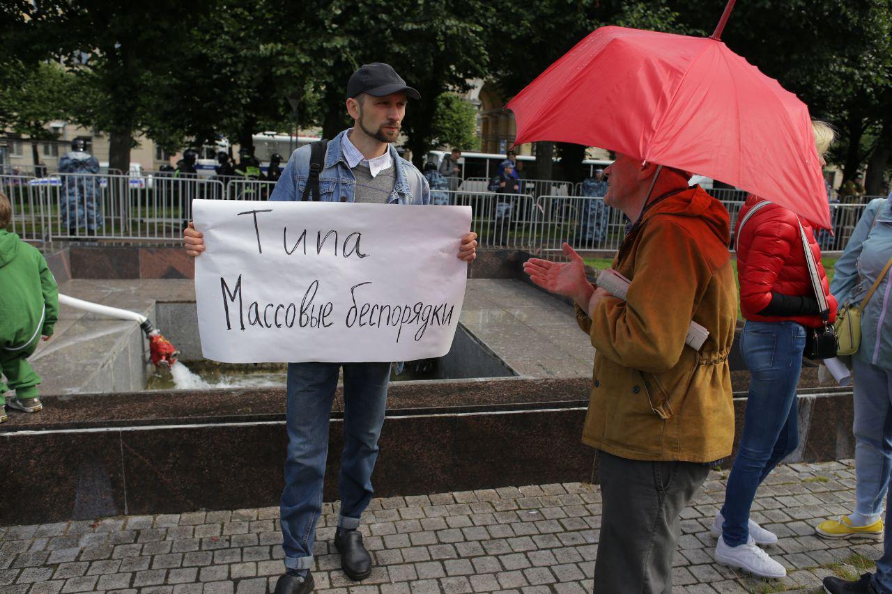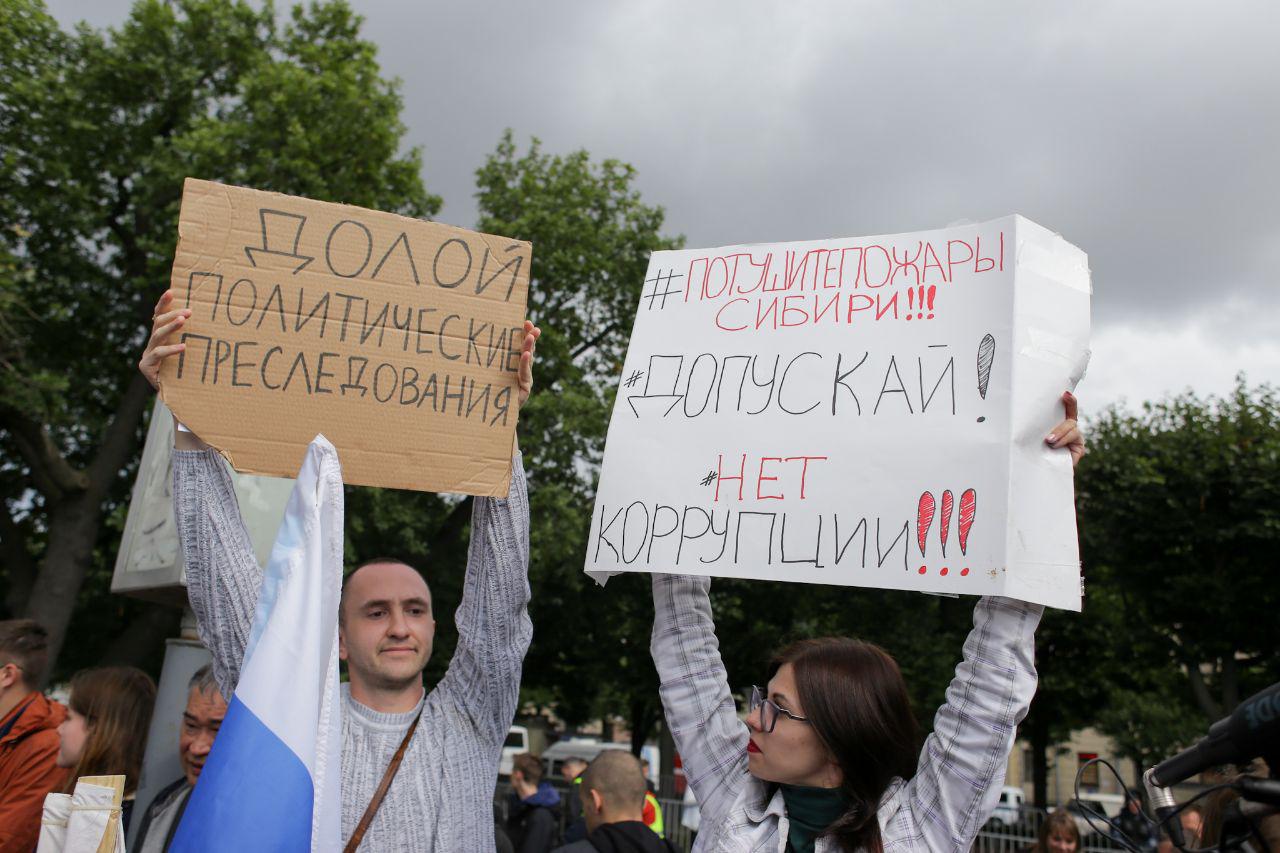 В Петербурге 3 августа прошел согласованный митинг за свободные выборы и против разгона акции в Москве. На площадь Ленина, по оценкам корреспондента «Бумаги», пришли около 2,5 тысяч человек. В том числе депутат Виталий Милонов и комик Данила Поперечный.