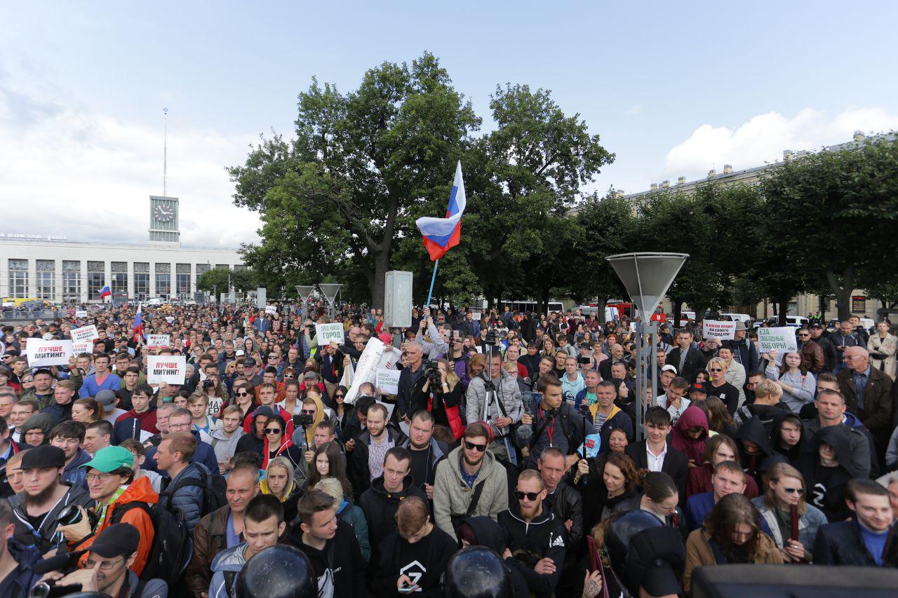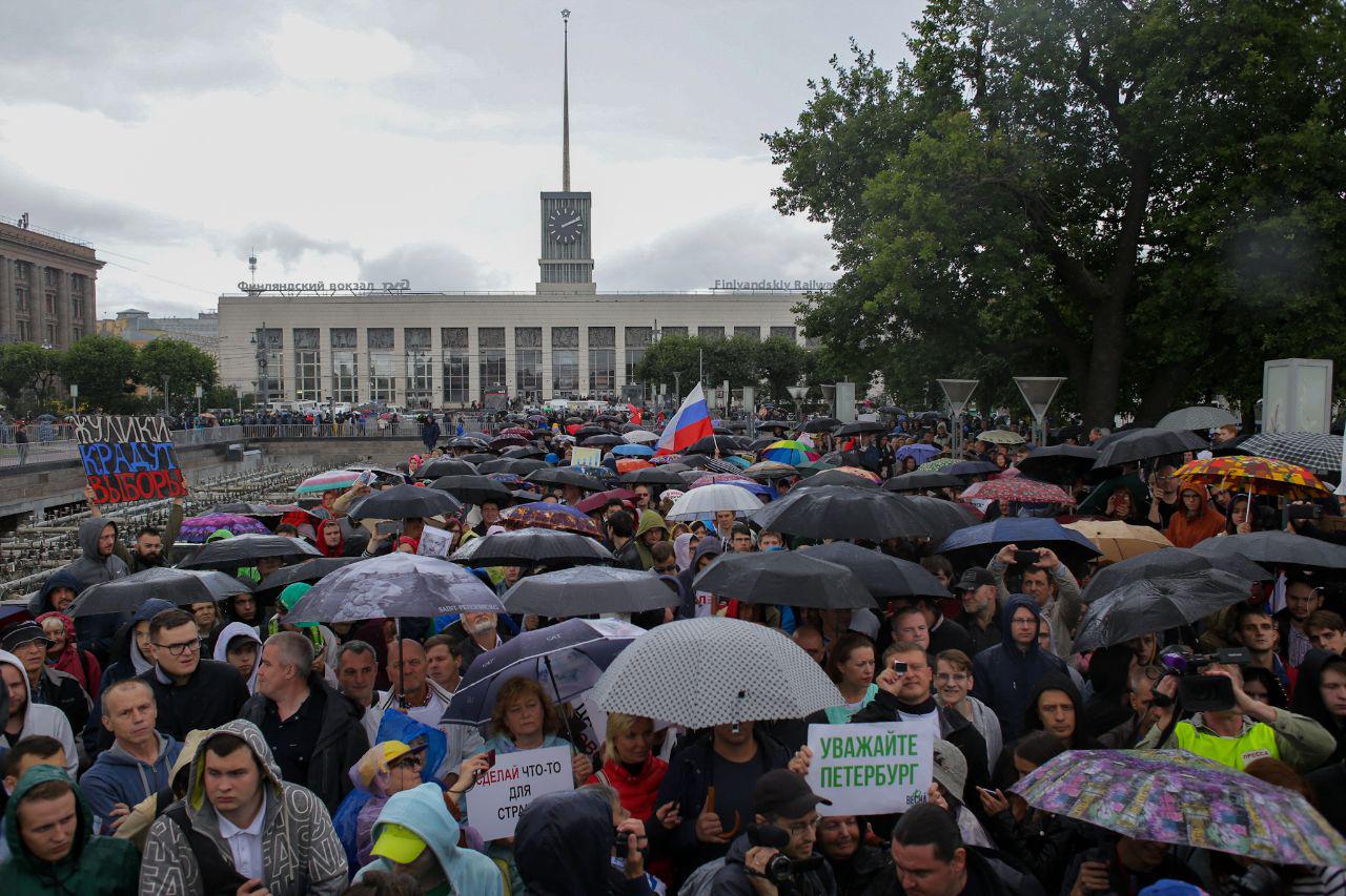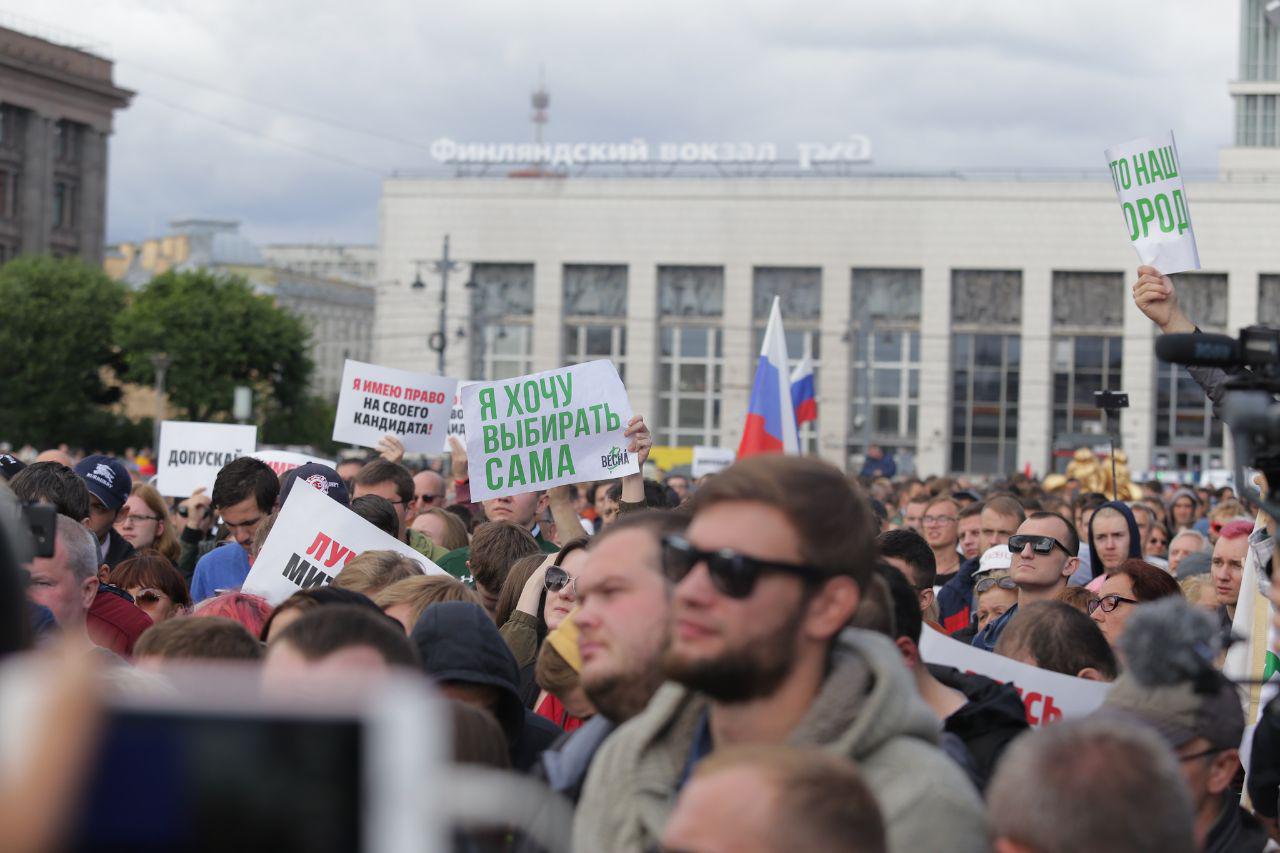 На митинг за свободные выборы в Петербурге пришли 2,5 тысячи человек. Как проходила акция на площади Ленина