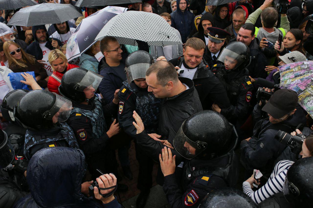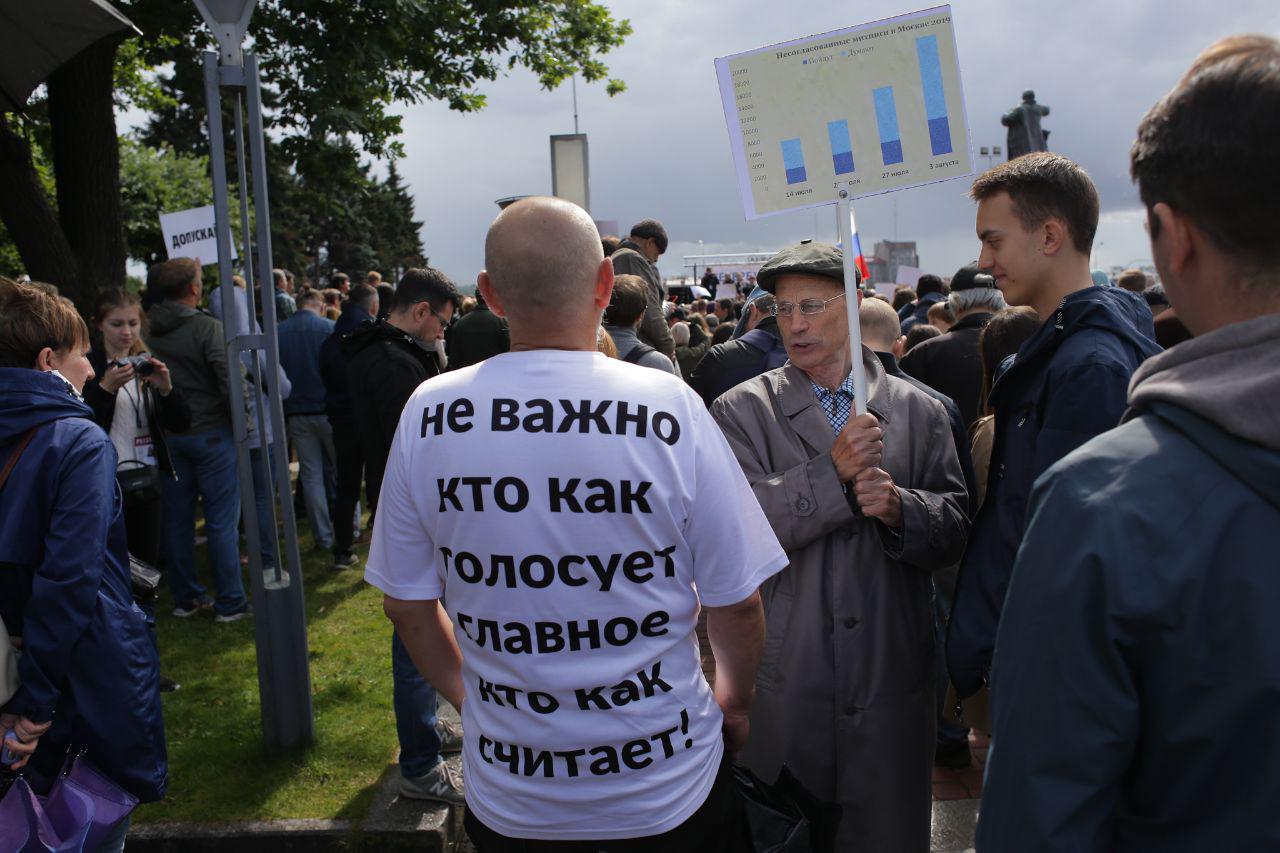 Участники акции стояли с плакатами «Я имею право на своего кандидата» и «Допускай». Во время митинга задержали двух оппозиционеров — за оскорбления Путина со сцены.