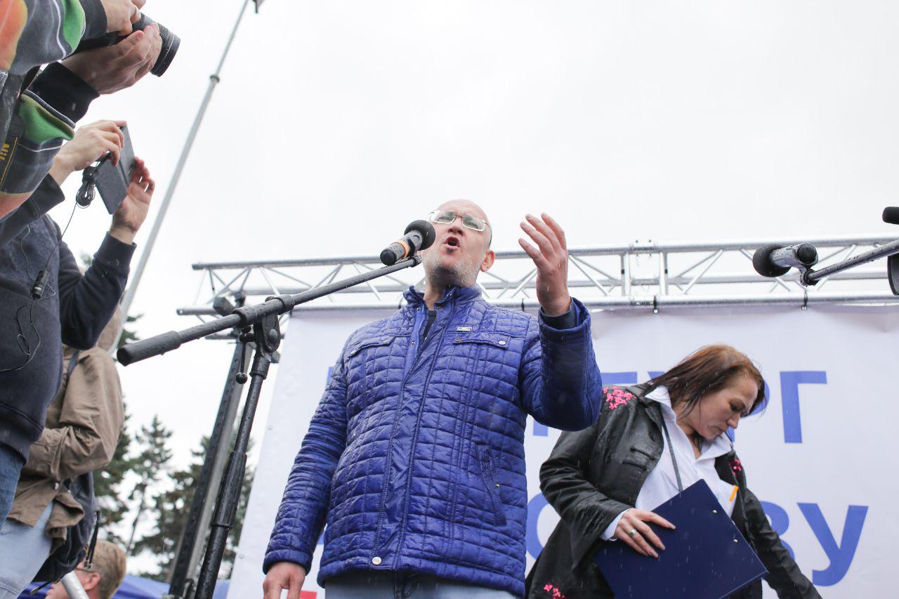 Часть митинга проходила под дождем