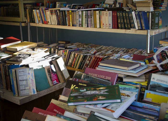 В палате № 2 грудой сложены VHS-кассеты, в соседней — библиотека. Среди десяти тысяч книг, подаренных Колионово, найдутся и тома по истории гражданской войны, и детективчики Донцовой. Вадим Николаевич не только сторожит больницу, но и работает библиотекарем: летом дети с радостью забегают в больницу взять ту или иную книжку.