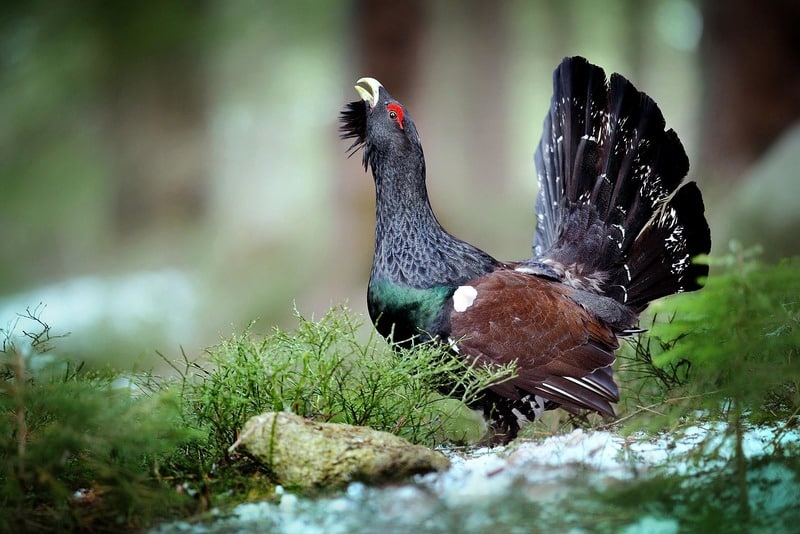 Один из подвидов глухарей, которые исторически жили в лесах Ленобласти, — чернобрюхий. Прошлой весной его включили в Красную книгу России. Как сказано на сайте Красной книги, особенность птицы в том, что во время брачного периода самец демонстрирует минимальную бдительность и часто попадается в руки охотников. Вот как выглядит чернобрюхий глухарь.