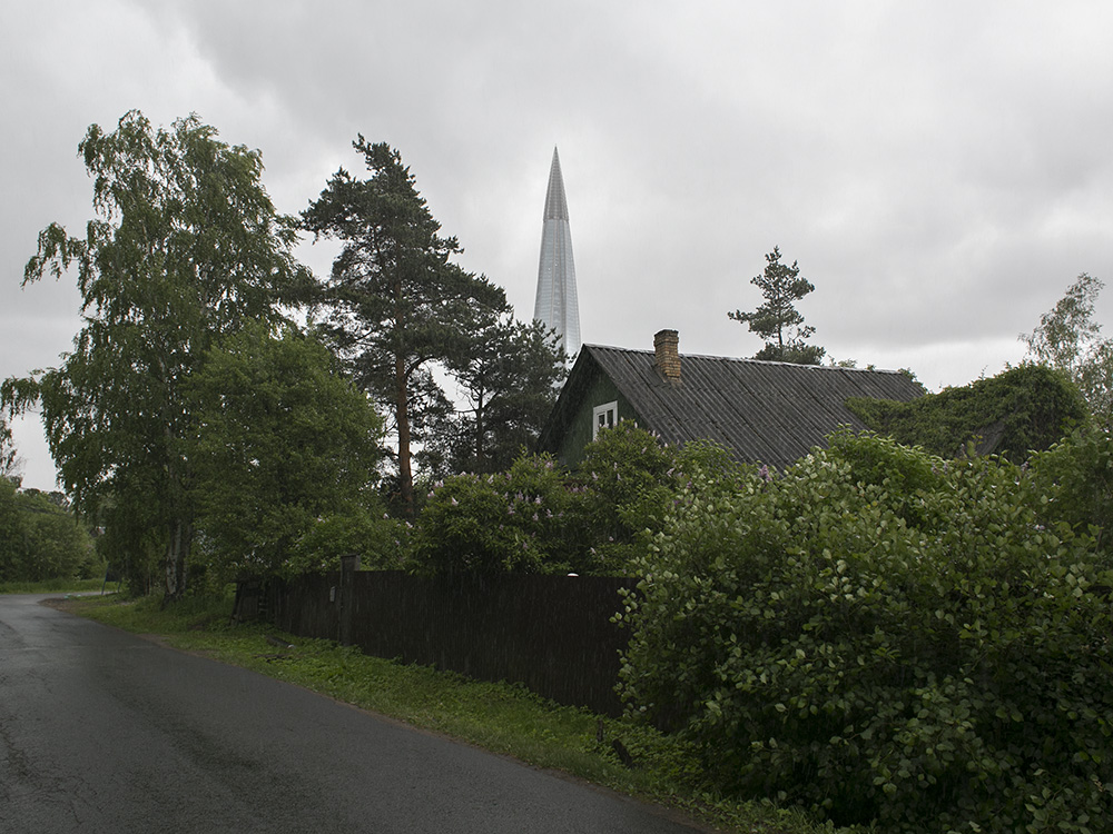 Сейчас пасторальные виды Лахты с покосившимися деревянными домами изменились: над деревней возвышается 462-метровая башня «Лахта Центра». И теперь небоскреб на фоне местного кладбища, железной дороги и деревенских построек — это настоящий киберпанк.