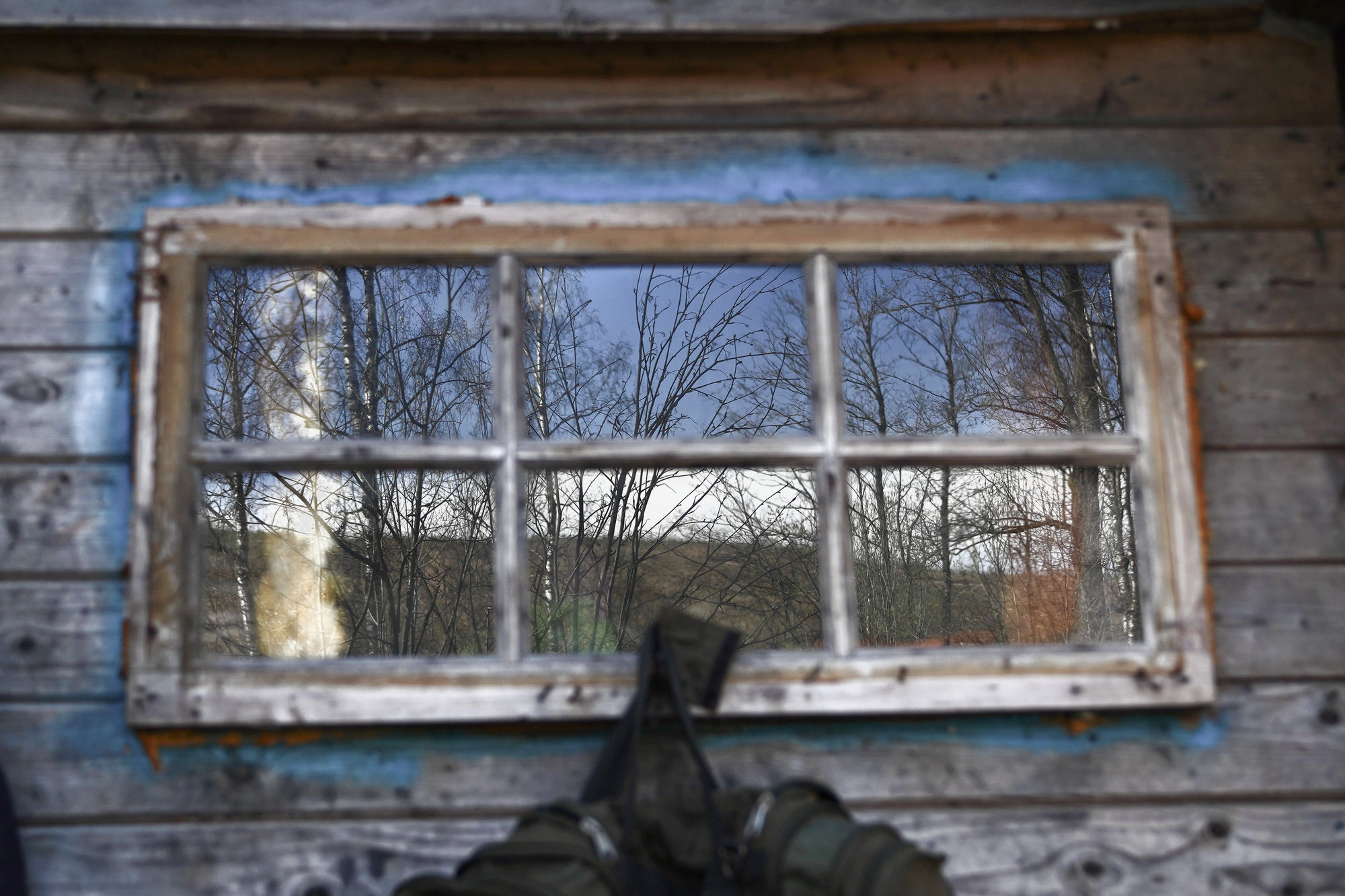 На входе в лес валяются спиленные деревья, упаковки из-под снеков, старые фотоаппараты, лопаты, виднеются чьи-то свежие следы. Первый домик на пути — дощатый, с зеркальцем на фасаде. Но там, по словам Василия, постоянно уже никто не живет.
