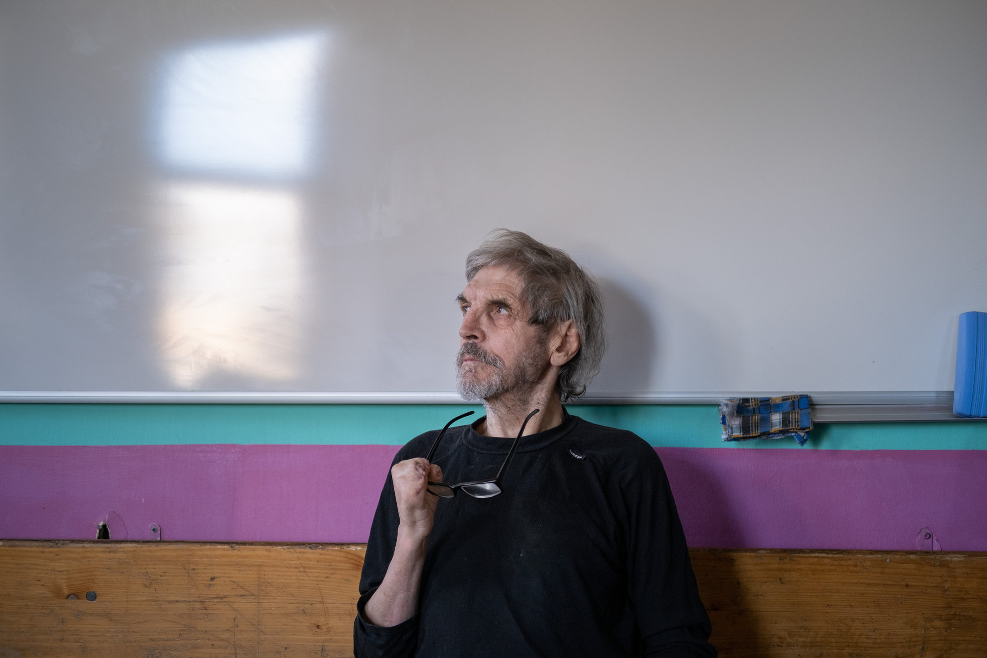 Жилистый, невысокий мужчина с немного взъерошенными седыми волосами и бородкой бездомным себя не считает и к своим соседям по комнате относится критически, называя их «бездельниками». В благотворительную организацию он обратился в 2022 году, чтобы ему оформили документы — паспорт (он не менял его со времен СССР) и инвалидность. Прежде чем переехать в приют, он два года думал — не хотел бросать свое хозяйство и двух кошек.