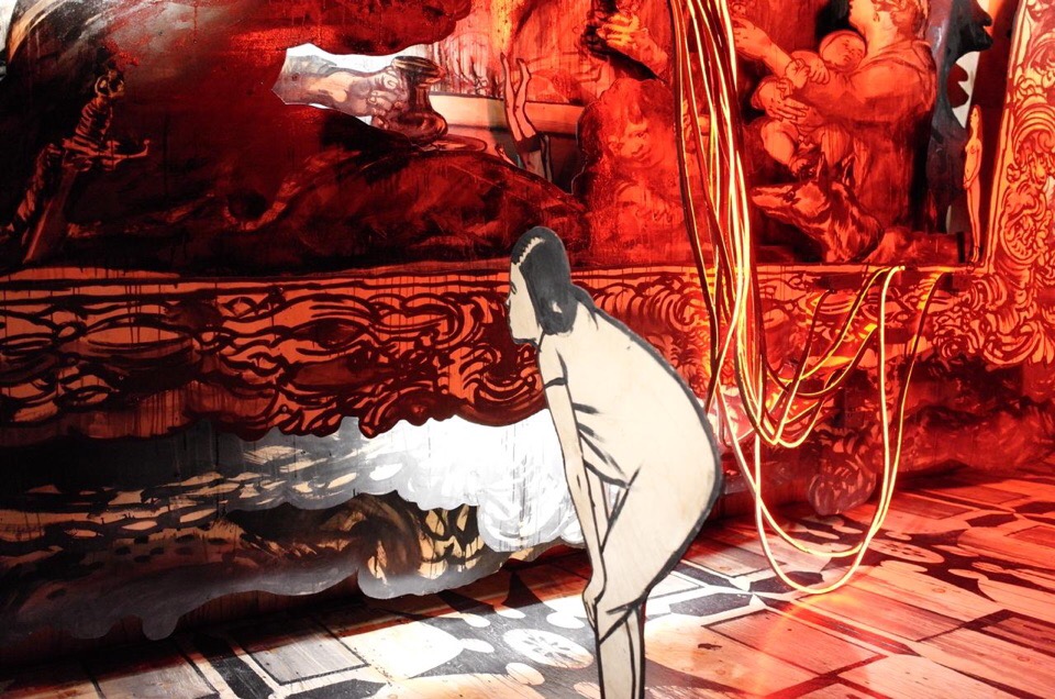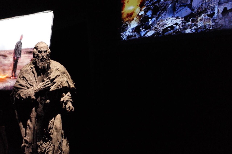 «Бумага» публикует фотографии российского павильона и двух работ — мультимедийной инсталляции на тему «Блудного сына», которую Сокуров создал вместе со студентами Академии художеств, и «Фламандской школы» Шишкина-Хокусая.