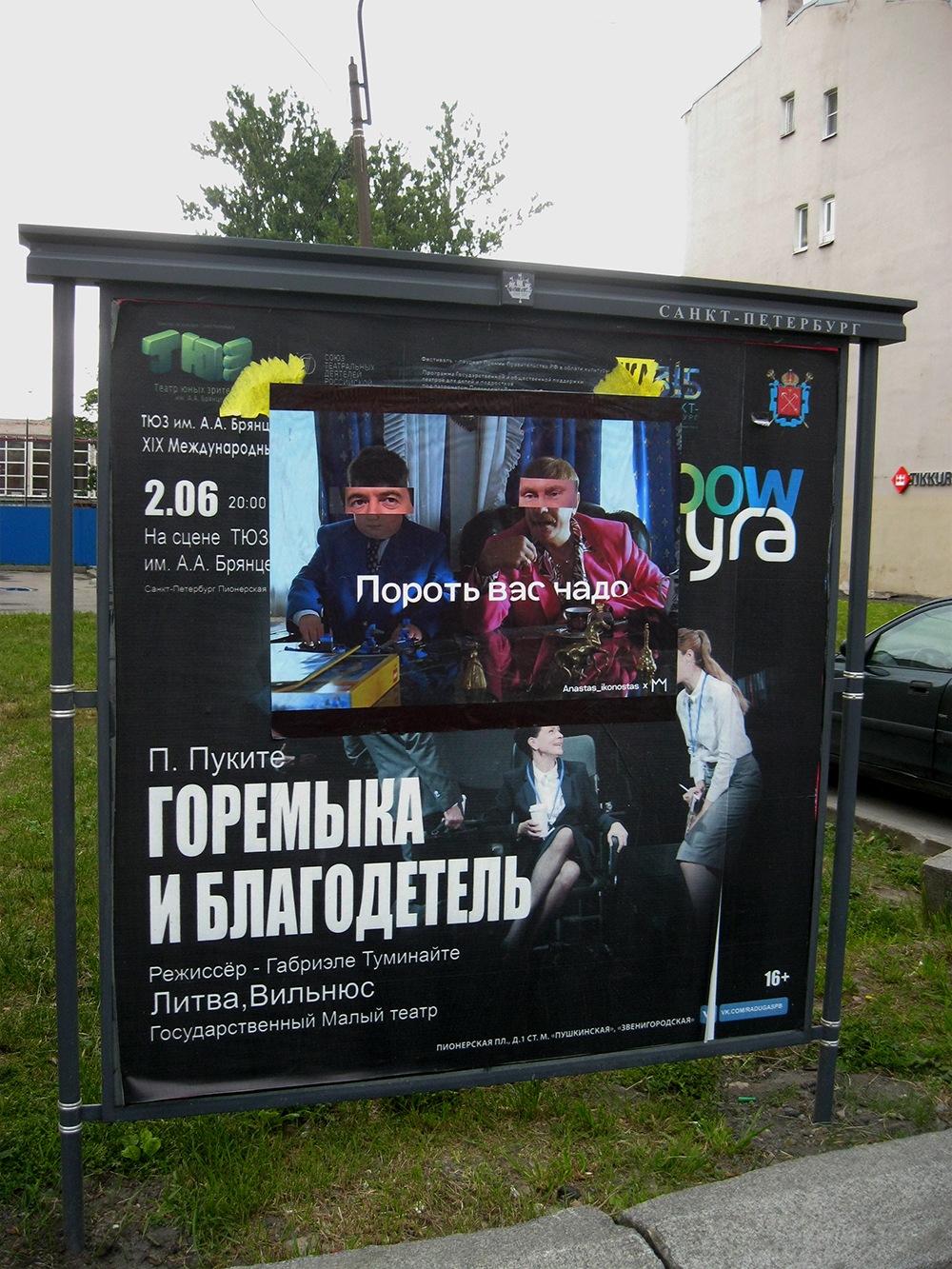 «Открытка» — совместная работа Миши Маркера и московской художницы Анастасии Анастас. Еще один плакат висит в Москве.
