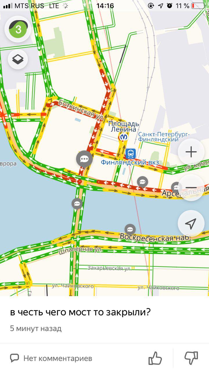 Водители также сообщали в соцсетях о перекрытиях на Московском проспекте и Дворцовой набережной.
