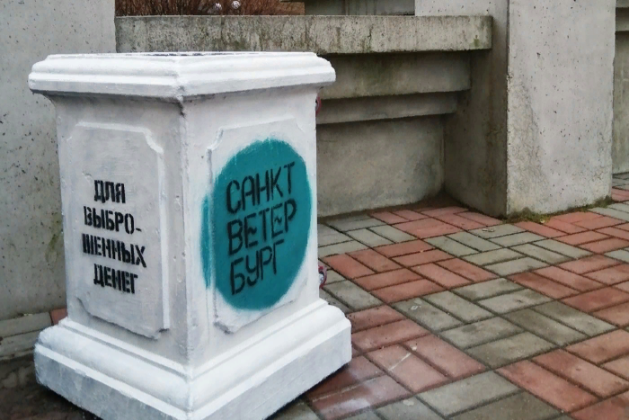 Художник Loketski посвятил новую работу метабренду Петербурга за 7 млн рублей. Это урна «для выброшенных денег»