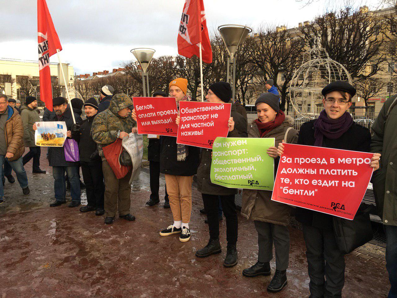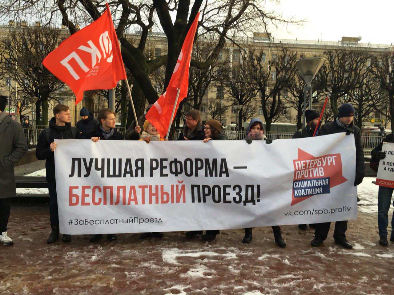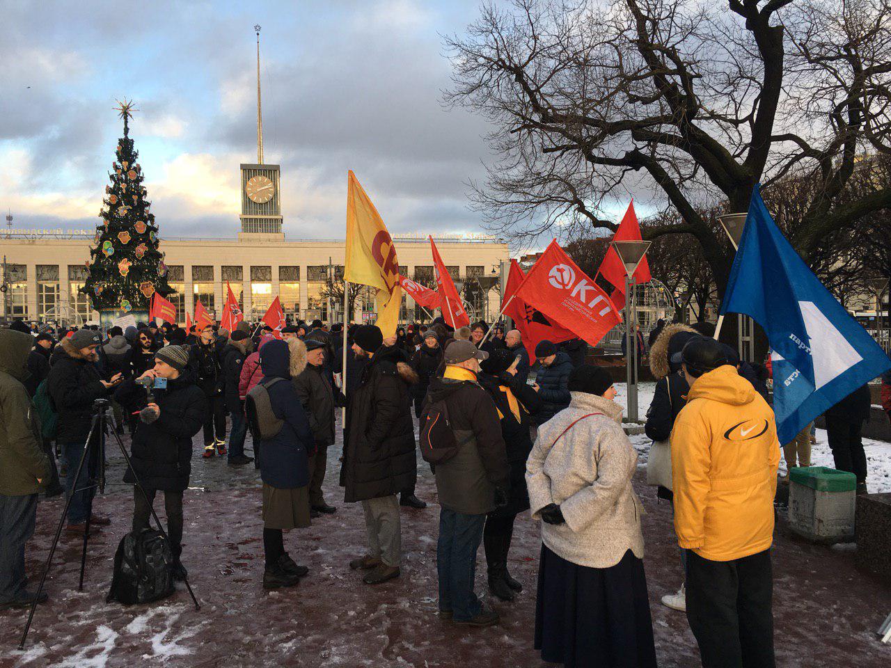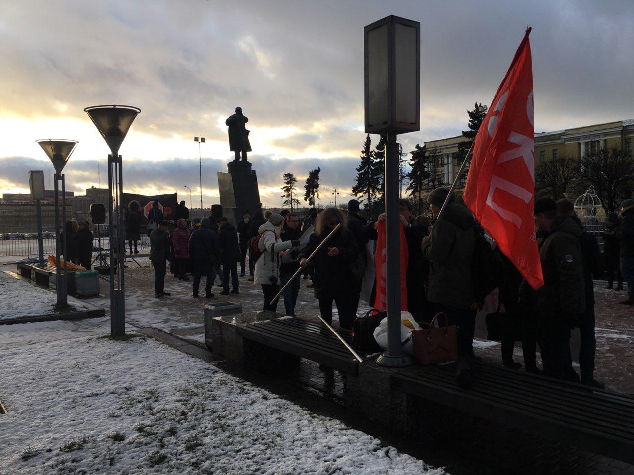 Днем в воскресенье в Петербурге прошел согласованный митинг против повышения стоимости проезда в общественном транспорте на десять рублей и роста цен на капитальный ремонт. По оценке корреспондента «Бумаги», на площади Ленина собралось около 200 человек.