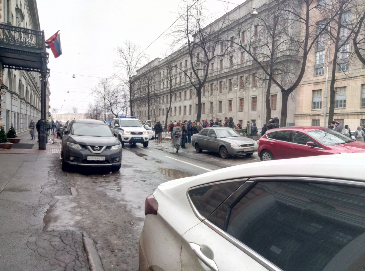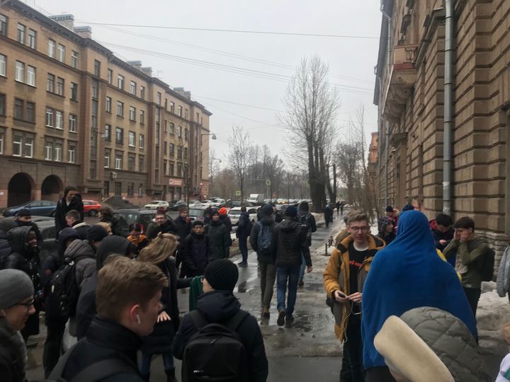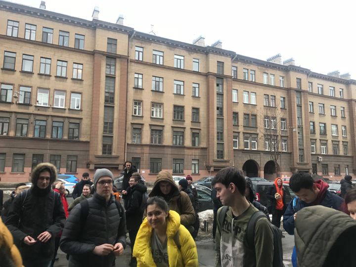 Как передает корреспондент «Бумаги», студентов из корпуса ИТМО на Кронверском проспекте, 49 вывели на улицу примерно в 14:00.