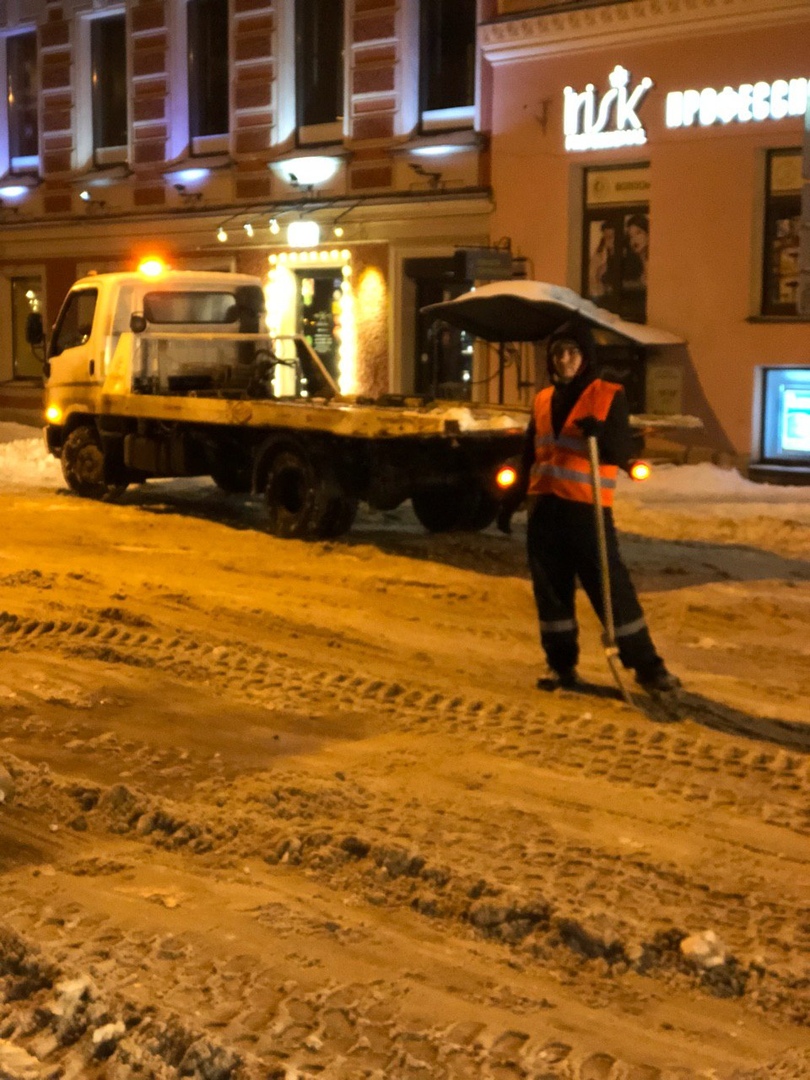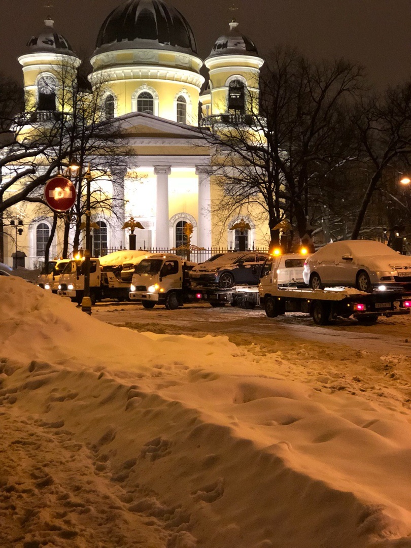 Вечером в четверг, 7 февраля, в Манежном переулке в Петербурге началась эвакуация машин для уборки снега. Об этом сообщает корреспондент «Бумаги» с места.