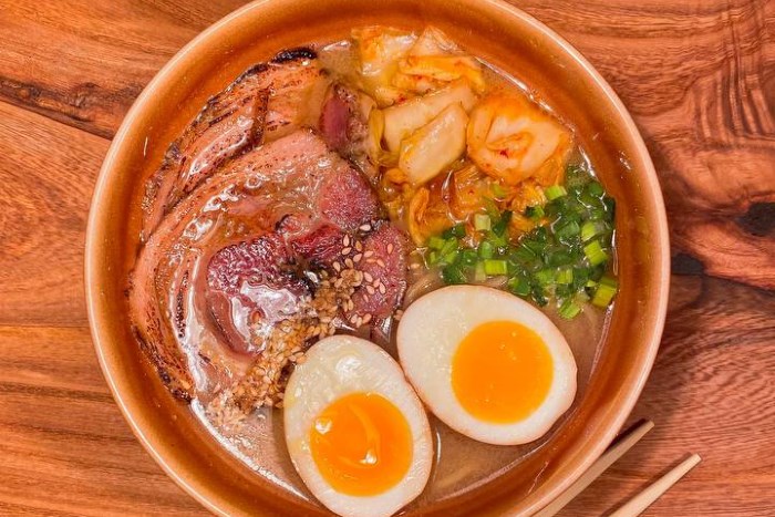 В меню включили пять раменов: от вегетарианского с корнем сельдерея и грибами шиитаке до супа с томленой говядиной и сладкой кукурузой. Кроме того, гостям предлагают экспериментальные японские блюда — бао с говядиной и капустой кимчи, цветную капусту с тофу-кремом, мисо-пудинг на банановом кексе.