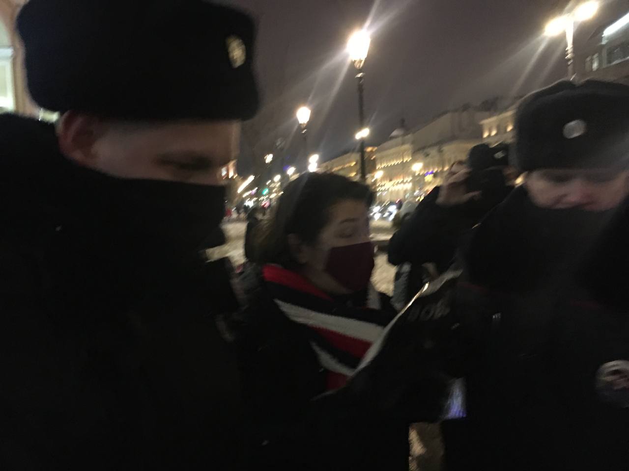 У Гостиного двора проходят пикеты в поддержку Алексея Навального. Полиция задерживает их участников.