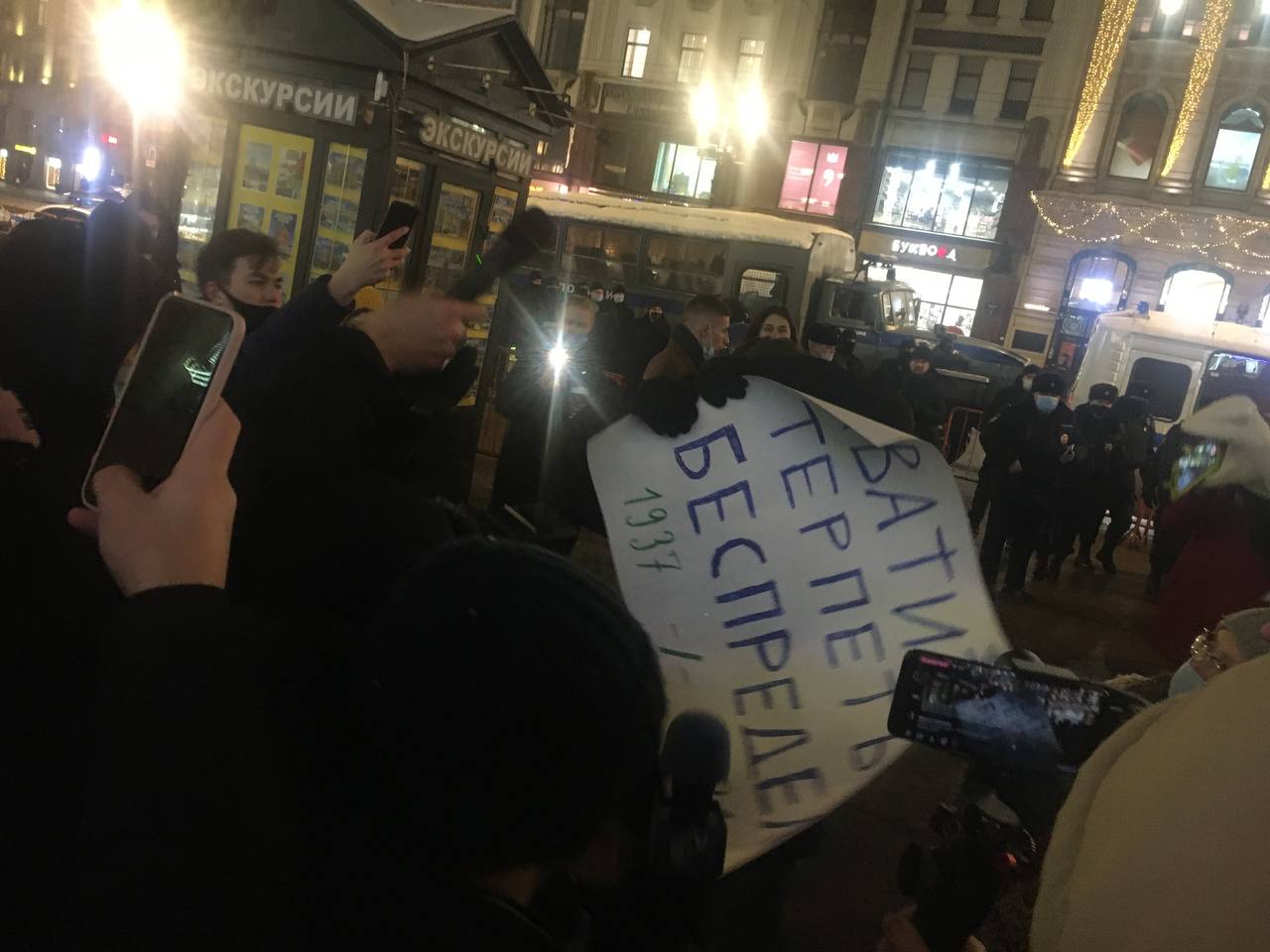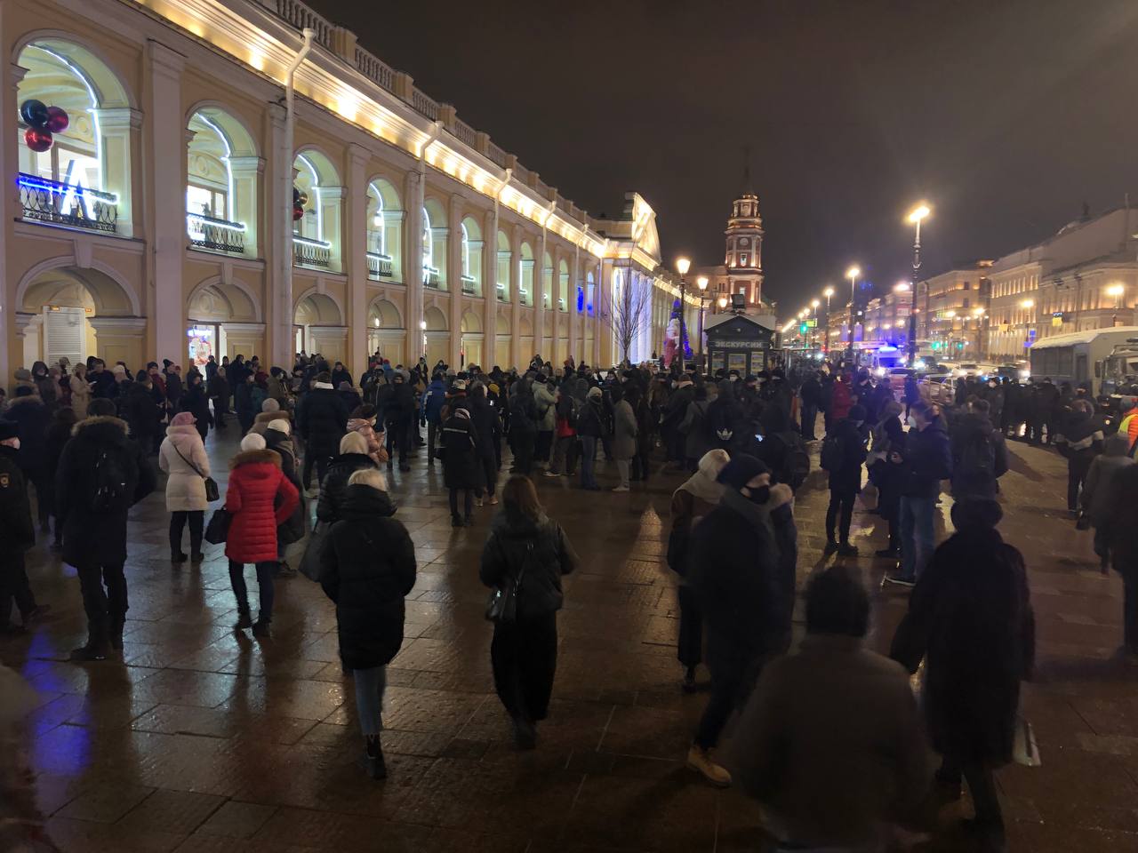 У Гостиного двора проходит акция в поддержку Алексея Навального. Полиция задерживает ее участников. Обновлено