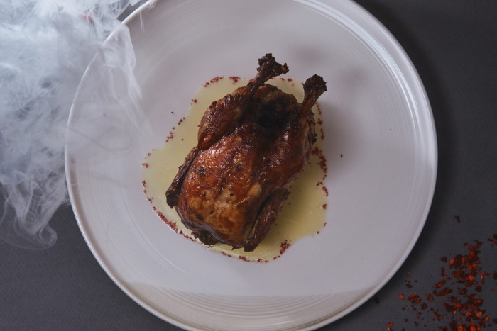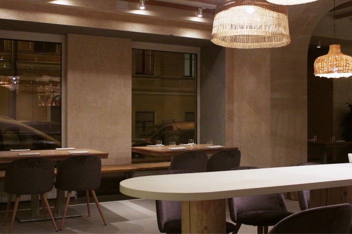 Интерьер ресторана оформила дизайнер Арианна Микая, акцент она сделала на натуральных цветах и текстурах: к примеру, в зале вывесили плетеные светильники ручной работы.