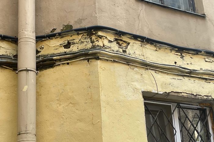 По словам Мызниковой, примерно с 1 по 12 мая в доме на Съезжинской проходил текущий ремонт фасада. Петербурженка уточняет, что в итоге здание было плохо отремонтировано. «Мы ждали его [ремонт] 25 лет, каждый месяц вносили деньги. В итоге получилось безобразие. Я им [рабочим] говорила: „Вы хотя бы штукатурку эту отбейте“. Но никто ничего не сделал», — рассказала она.