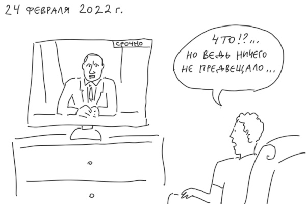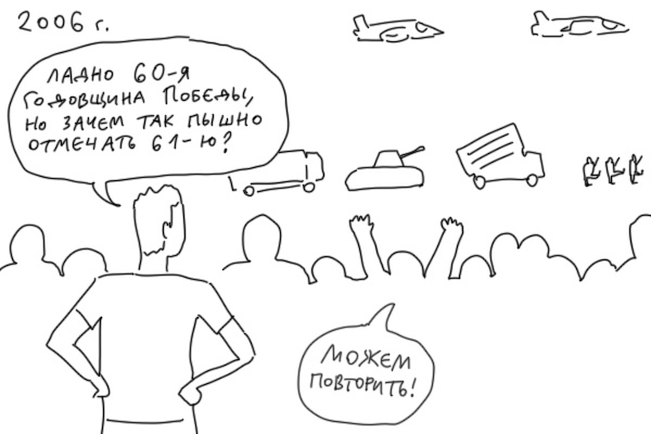 Художник Duran из Петербурга, который более десяти лет создает комиксы для соцсетей, выпустил новую работу «Ничего не предвещало». В ней автор вспоминает масштабные празднования Дня Победы, российские фильмы о войне, выходившие в последние годы, и запуск карты «Мир».