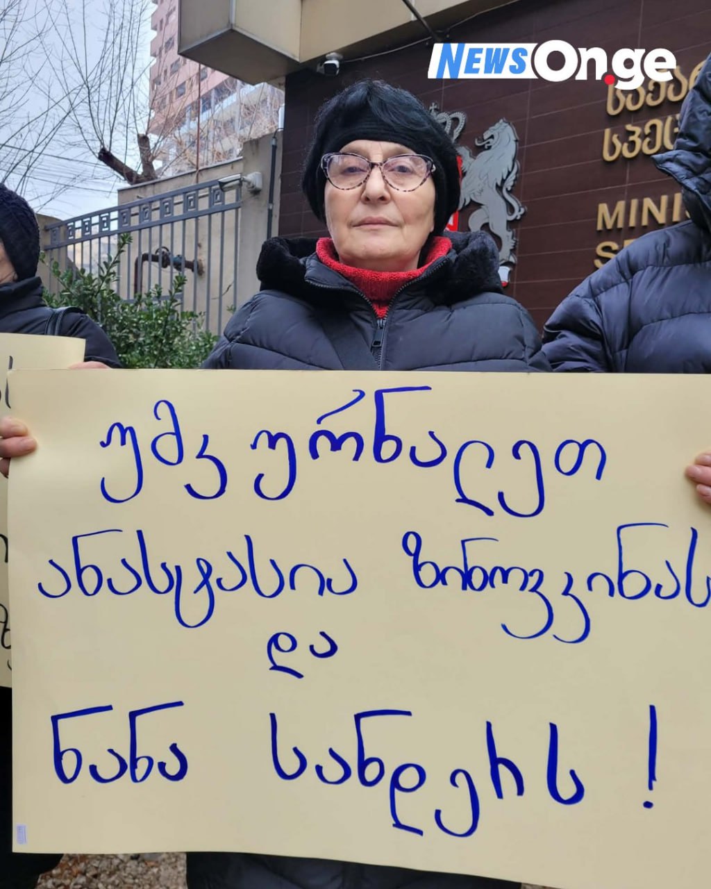 Участницы протеста требуют встречу с главой ведомства Гиорги Патаридзе и начальником медицинского департамента.