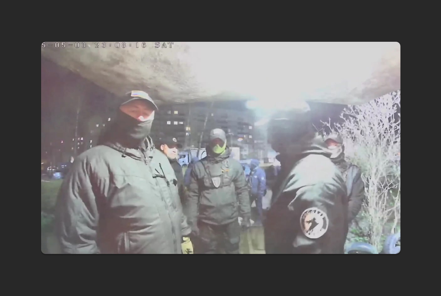По данным МЧС, сообщение о пожаре поступило 4 мая в 23:39. На опубликованном «Фонтанкой» видео мужчины в черной одежде, в масках с шевронами «Русской общины» в 23:08 звонят в домофон, предположительно, того самого дома на Ленинградской.
