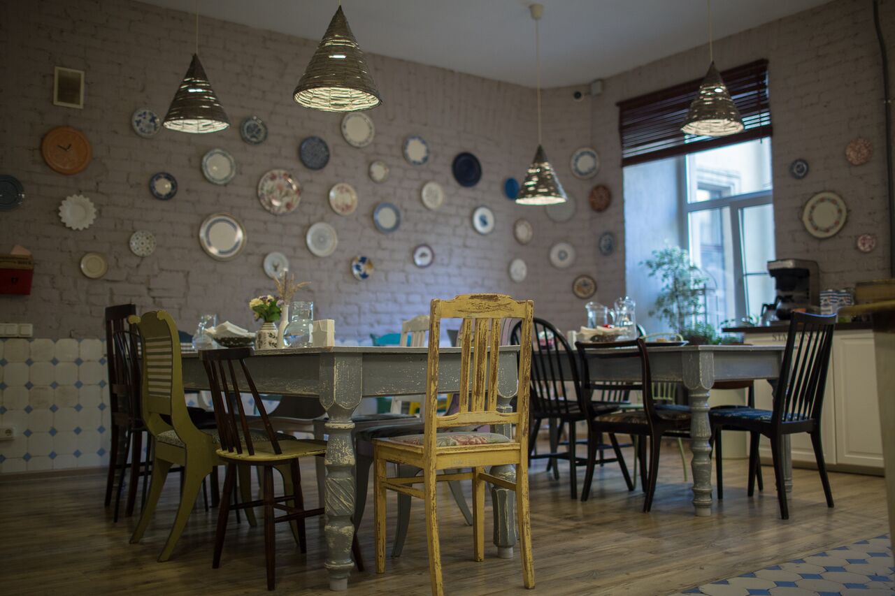 Уже шесть лет Soul Kitchen располагается в доме середины XIX века на набережной Мойки. У входа — длинный полукруглый диван с подушками, разноцветные мягкие кресла и дореволюционная печь с массой безделушек. С балкона — с креслом и растениями в горшках — открывается вид на реку и шпиль торгового дома «У Красного моста». На кухне пахнет свежеиспеченной шарлоткой, за столом две девушки в домашней одежде завтракают и неспешно обсуждают что-то на английском.