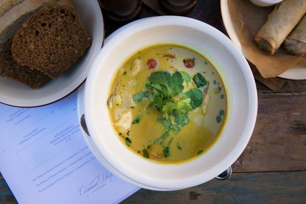 Ресторан «Скотный двор», в котором подают тайский суп с куриным филе и шиитаке, 1 января будет работать с 18:00. Блюдо стоит 310 рублей.