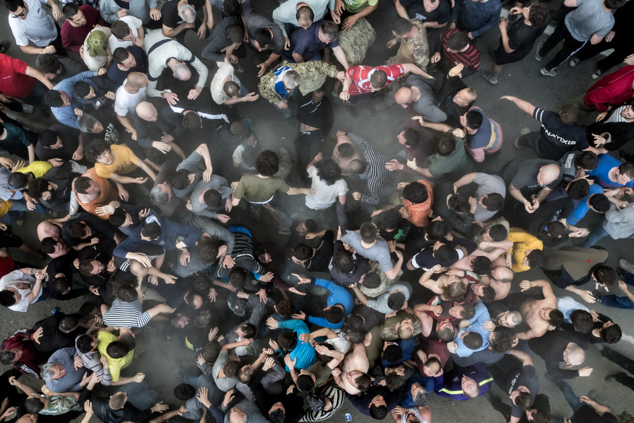 Начало выдалось адреналиновым и очень веселым — изначально мяч двигался в одну из сторон с большим трудом. Всё поменялось, когда игроки начали уставать.  Несмотря на жесткие правила, участники пытались снизить уровень опасности. Каждый раз, когда кто-то падал, все поднимали руки и кричали «стоп!», чтобы его вытащить и не задавить. Тем не менее одному человеку всё же понадобилась скорая помощь — в давке он потерял сознание.