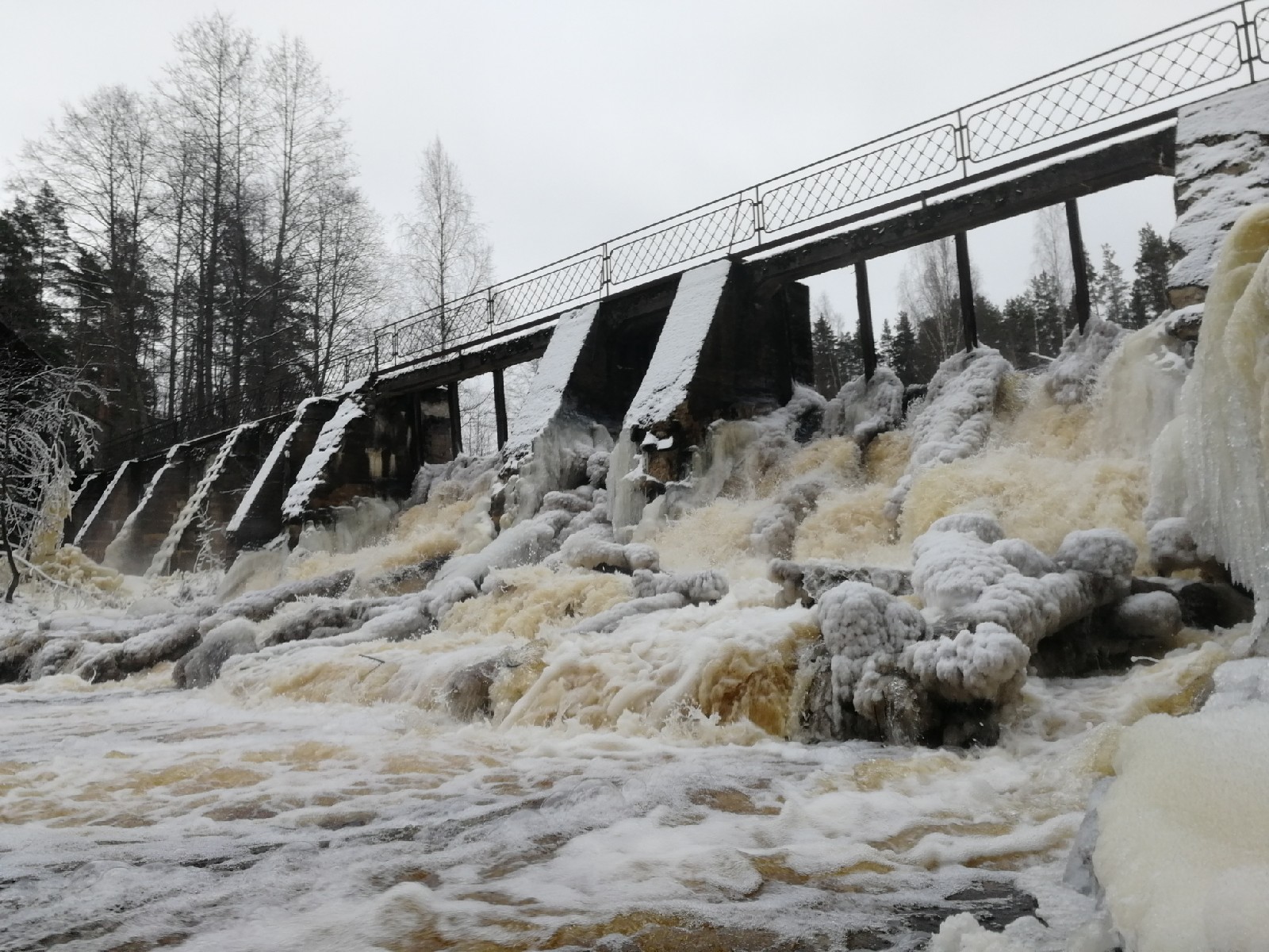 В заказнике «Гряда Вярямянселькя» есть старая финская ГЭС. Она выглядит впечатляюще и зимой, и летом. Зимой особенно — река Волчья здесь не замерзает, и на колоннах образуются ледяные наросты.