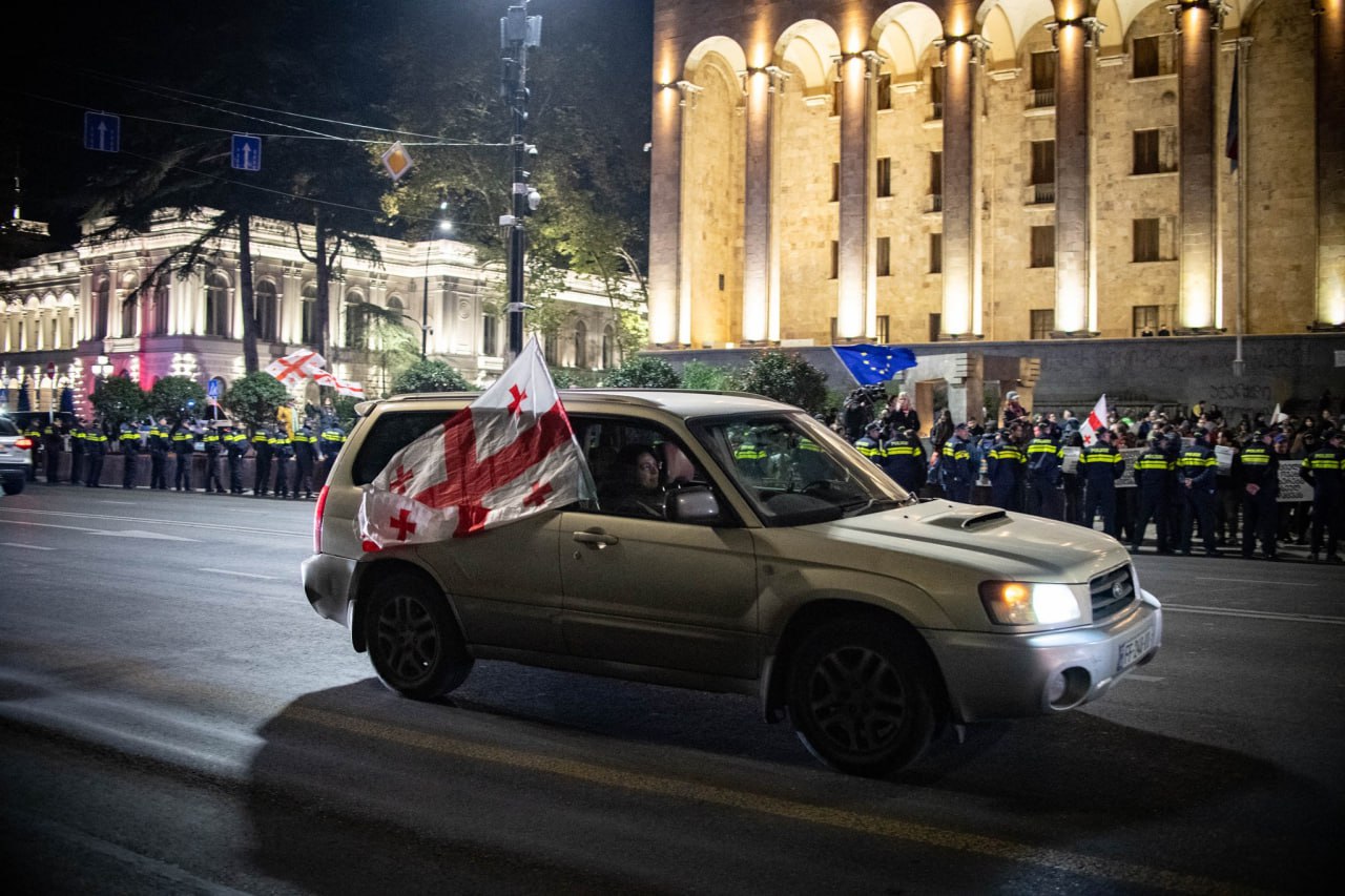 После 4 октября демонстранты ежедневно перекрывали проспект Руставели. Но вскоре санкции за подобные акции ужесточили: перекрытие дороги теперь наказывается только арестом (без возможности получить штраф, как это было ранее), повторное нарушение чревато уголовным делом. Полиция уже пару недель возводит у проезжей части живую стену и не дает демонстрантам выйти на дорогу.