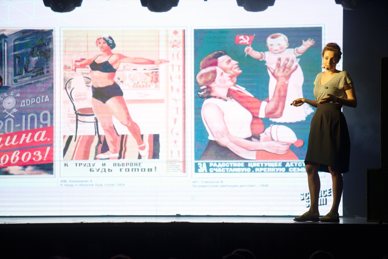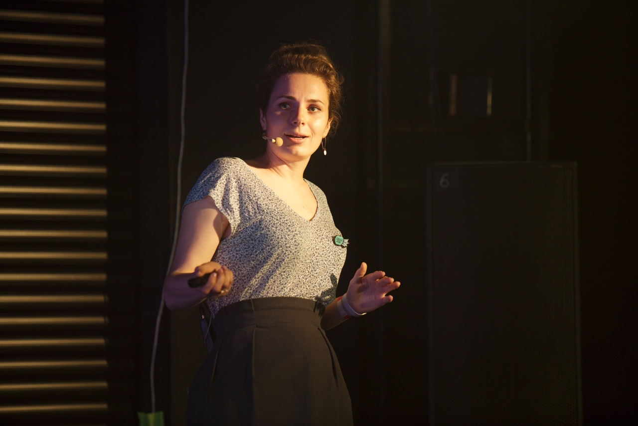 Анастасия Новкунская выступает на Science Slam «Бумаги» в июне. Фото: Александр Палаев