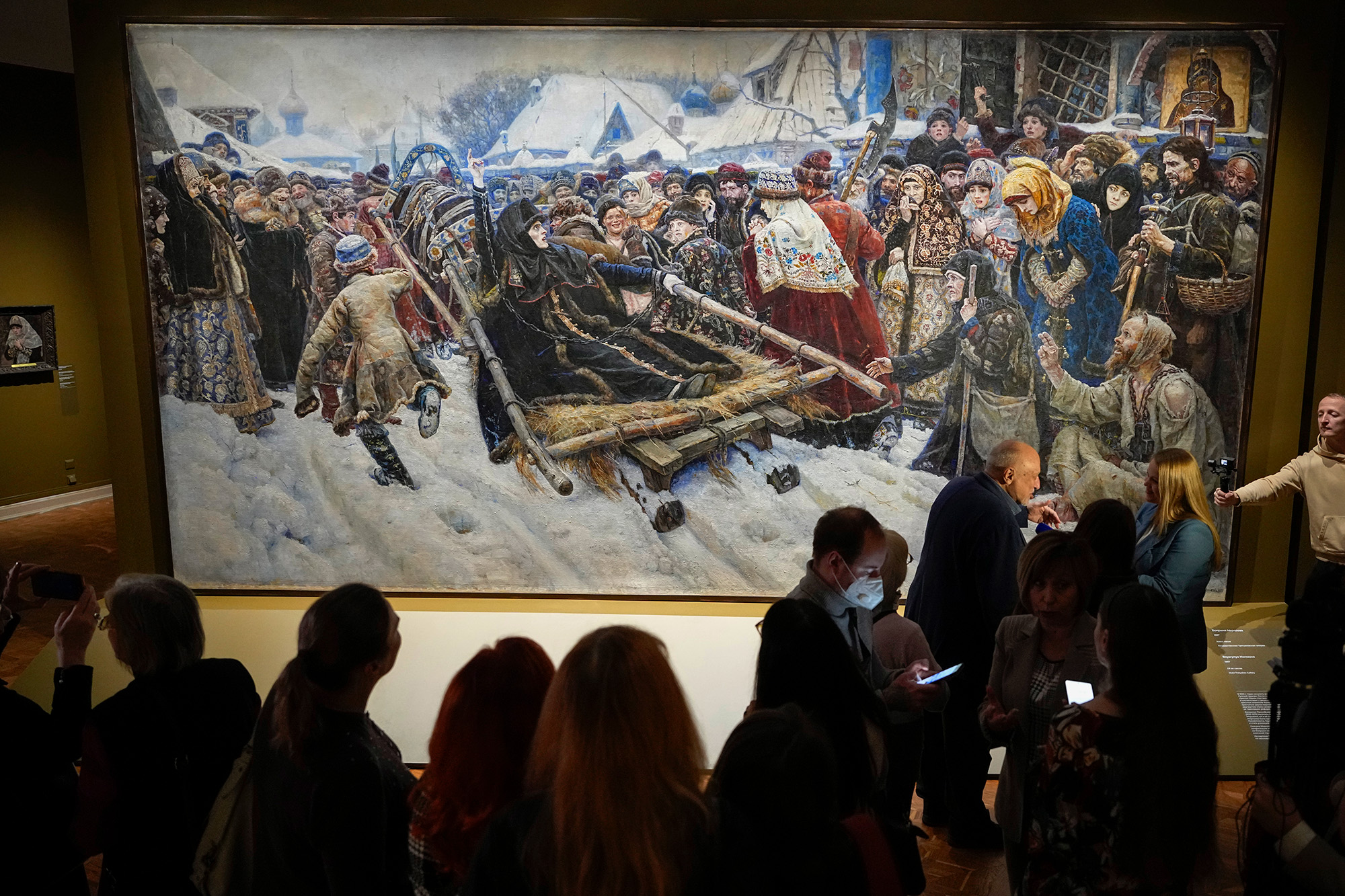 Посетители у картины «Боярыня Морозова» на выставке «Василий Суриков. К 175-летию со дня рождения». Фото: AP / TASS