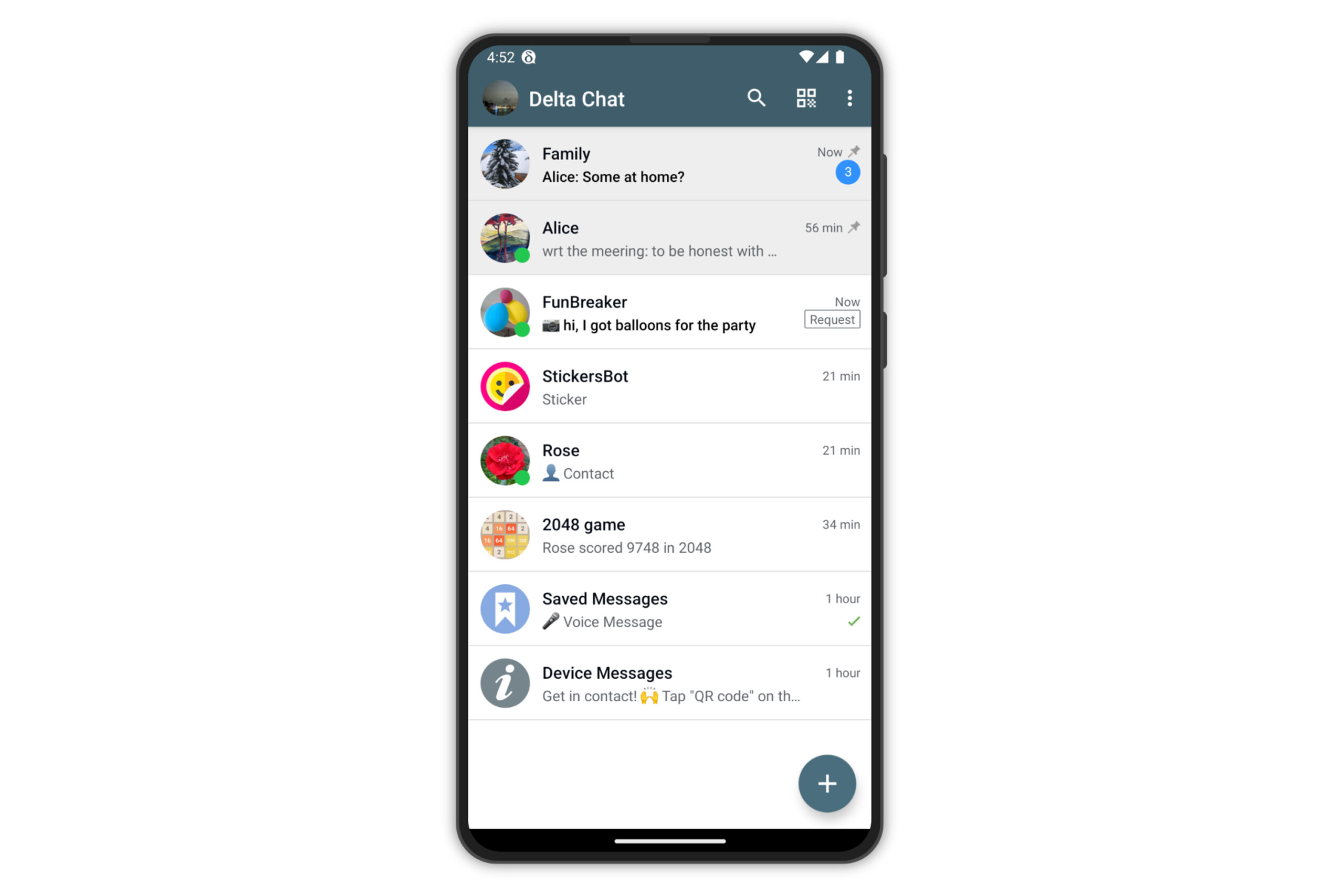 Мобильный интерфейс мессенджера. Скриншот: Delta Chat