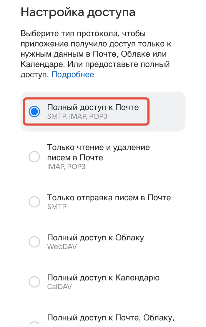 • Дальше нужно указать адрес почты и пароль — но не от самой почты. Речь идет о специальном пароле, который генерирует почтовый сервис для доступа через сторонние приложения. Например, здесь можно найти подробную инструкцию, как получить такой пароль для адресов на Mail.ru, а здесь — для «Яндекс Почты».