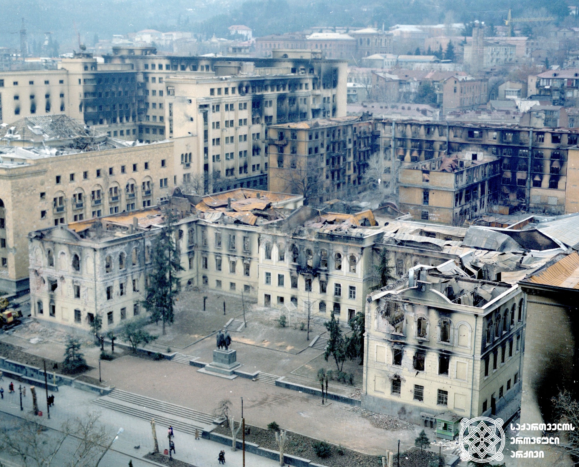 Разрушенное здание Дома правительства (ныне парламента), 1992 год / pastvu
