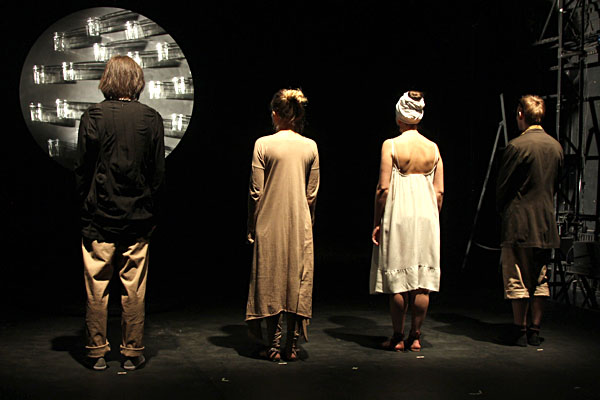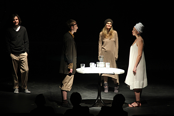 Нет у спектакля и привычного для театра действия и традиционных диалогов, а финал вообще отсутствует как таковой: артисты — Алена Старостина, Иван Николаев, Илья Дель и Алена Бондарчук — повторяют финальную сцену до тех пор, пока зал не покинет последний зритель.