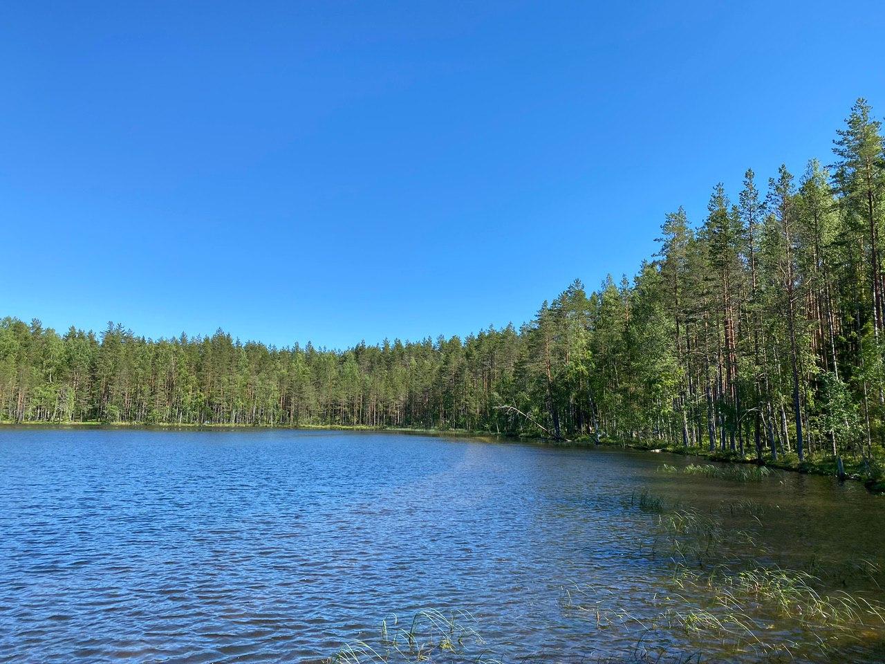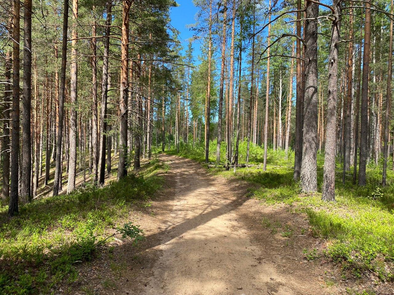 Маршрут проходит по сосновому лесу. По пути вам встретится лесное озеро Лебяжье с пирсом и беседками, болотистая речка Волчья и заросли черники. Можно прогуляться пешком или на велосипеде, народу не очень много. Обратите внимание, что в заказнике запрещено разводить костры, мусорить и ставить палатки.