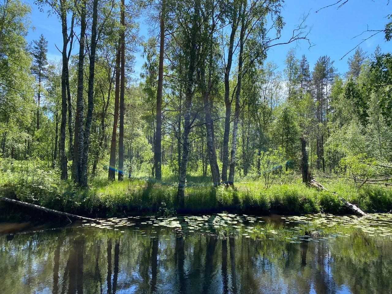 Деревья высоченные — не хватает рук, чтобы обнять. Те, что петровской посадки, пронумерованы. Говорят, что в заказнике живут звери и птицы средней полосы, мы увидели только большую лягушку.