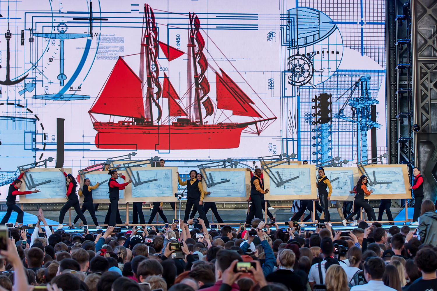 Пиротехническое шоу для выпускников и появление брига с алыми парусами ожидается в 00:40 25 июня. Прямую трансляцию будет вести Пятый канал. Как рассказал «Бумаге» источник, связанный с организацией праздника, в этом году с брига «Россия» для зрителей выступит «патриотический» певец Shaman — он исполнит песню «С чего начинается родина».
